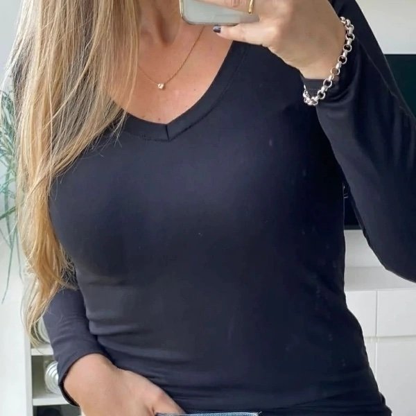 1745 Blusa Izabel transpassada regata e manga longa poá