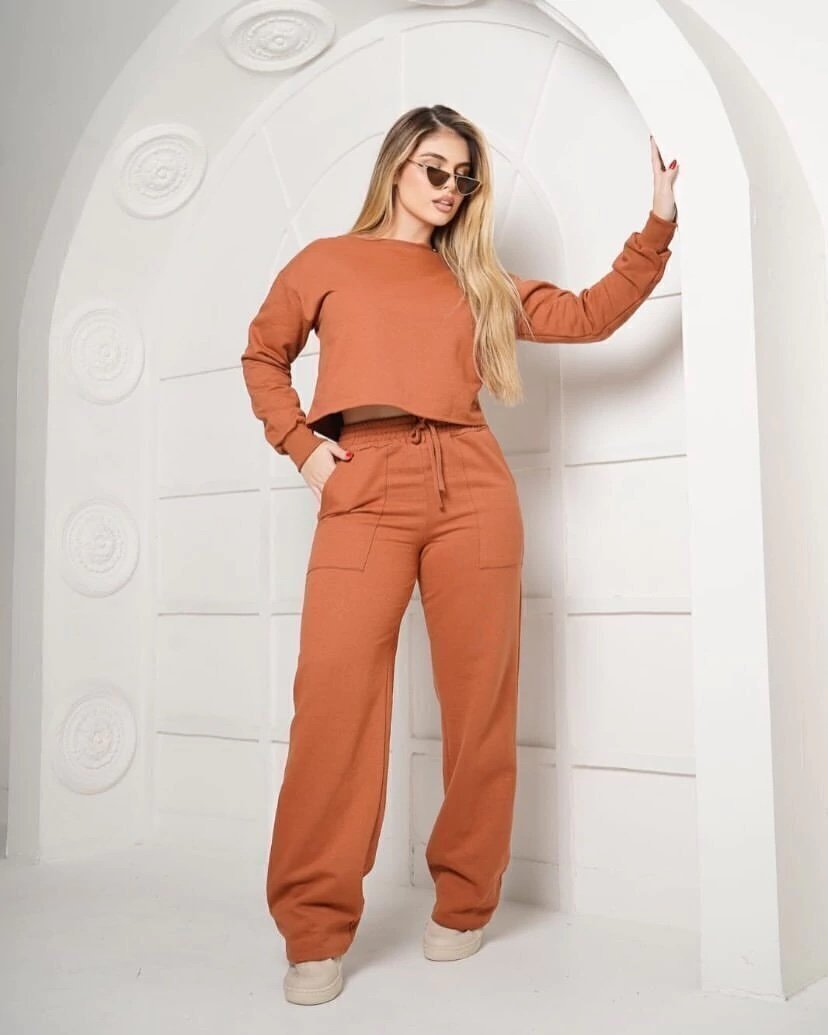 2104 Conjunto Gabriel blusa manga longa bufante princesa e calça jogger moletom