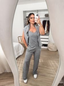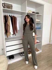 2508 Conjunto Fabi t-shirt manga longa e calça wide leg pantalona moletom