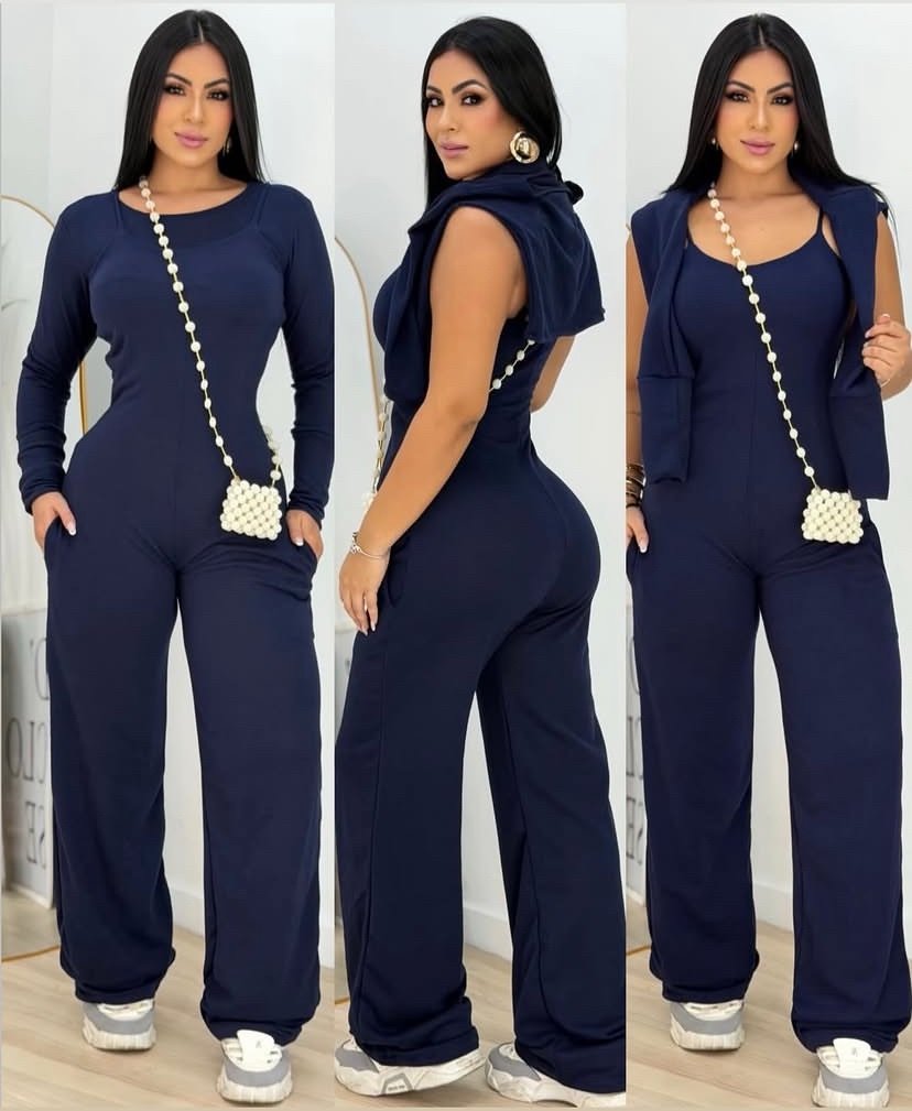 2832 Conjunto Rip eurolook blusa cropped manga longa e calça pantalona alfaiataria