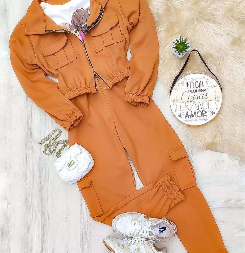 2104 Conjunto Gabriel blusa manga longa bufante princesa e calça jogger moletom