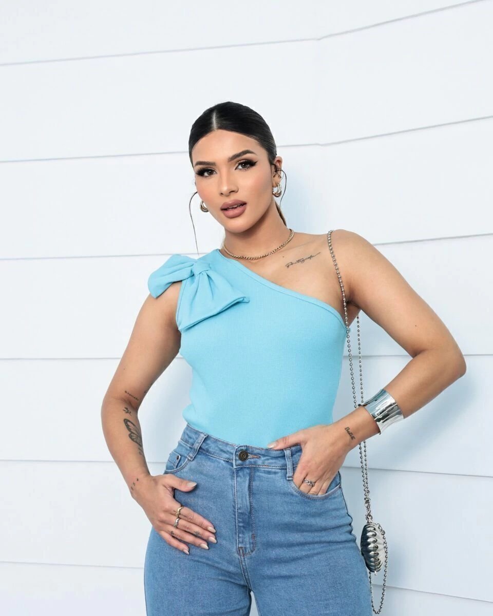 2525 Blusa regata mula manca flor laço