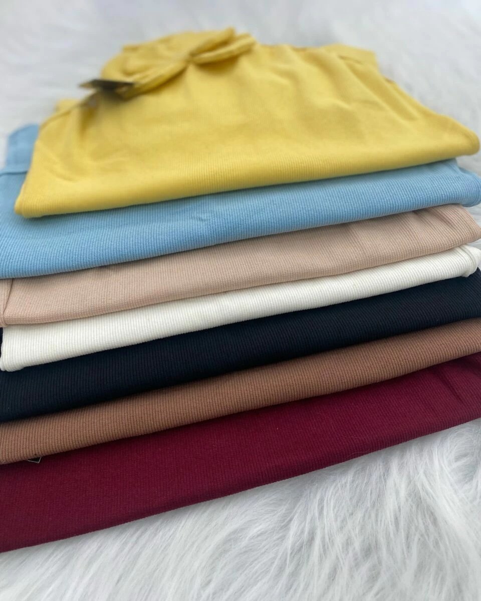 Em tecido malha canelada ribana.