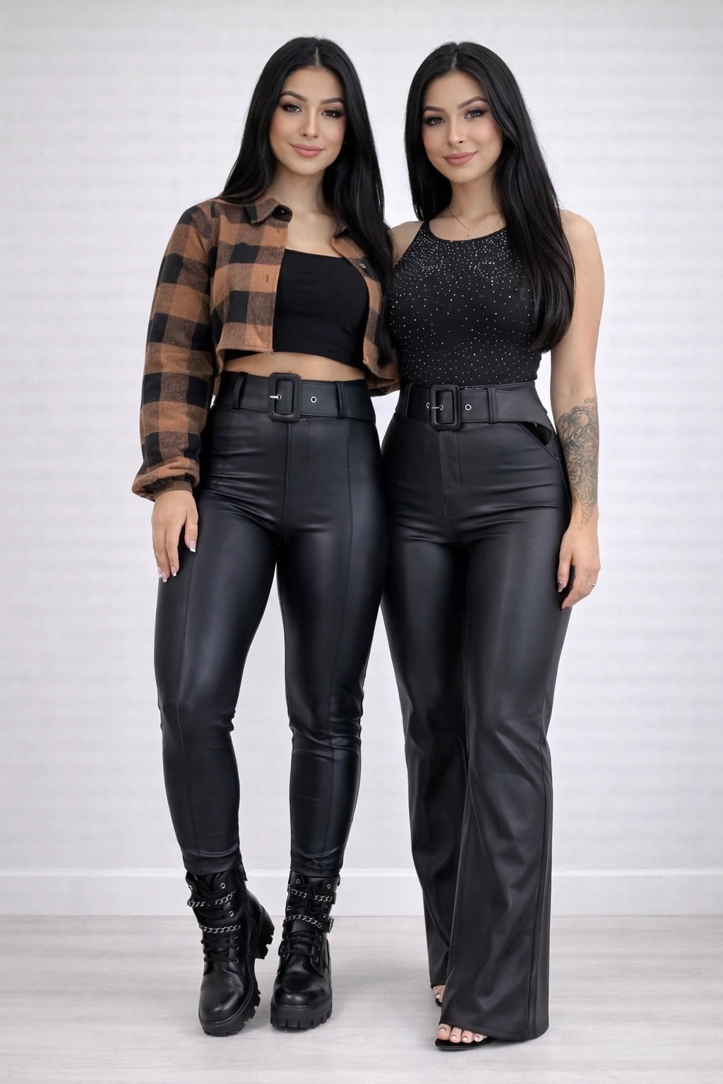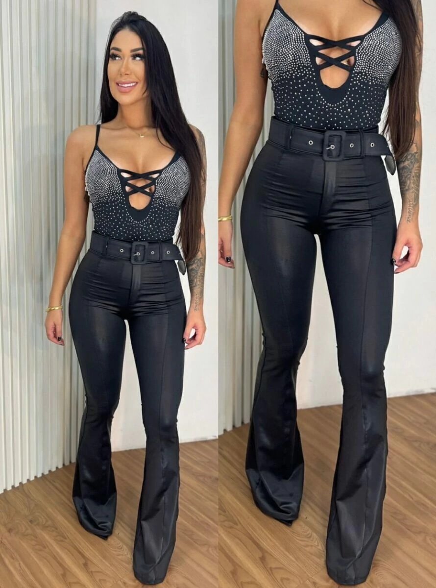 1615 Calça estilo Zara skinny courino