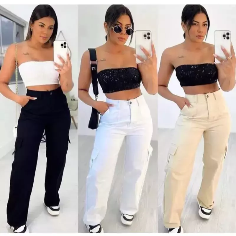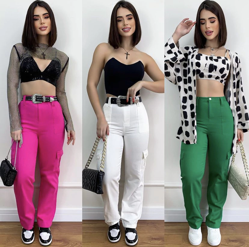 110 Calça e shorts jogger e pantalona com abertura botão lateral