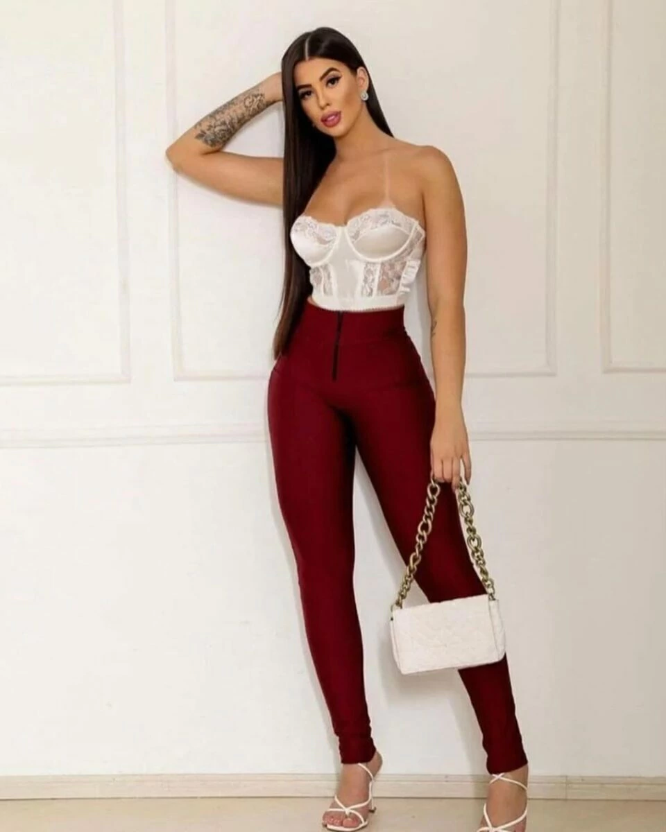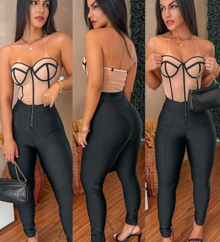 2831 Conjunto Sofia camisa botão manga curta e longa e calça pantalona