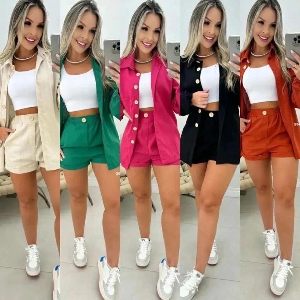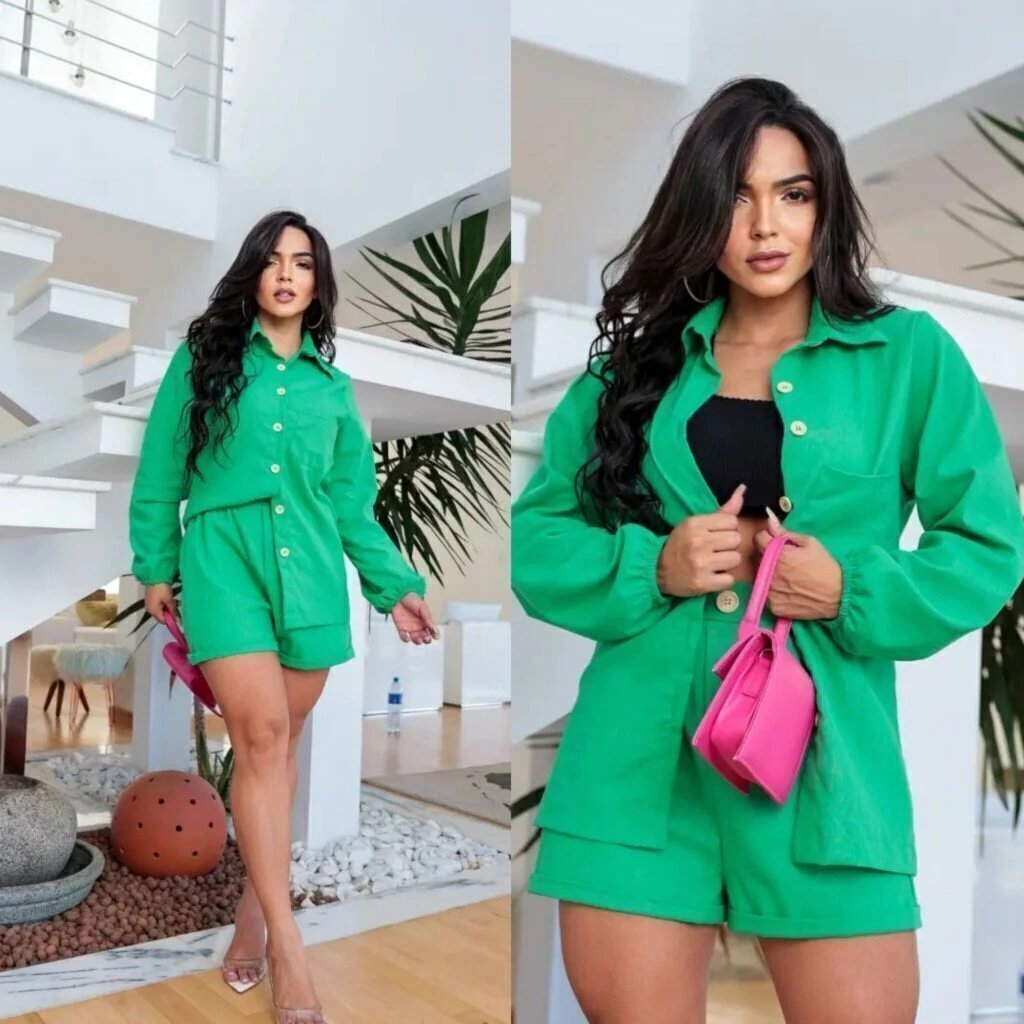 2728 Conjunto Angel max camisa bolso e saia com shorts alfaiataria