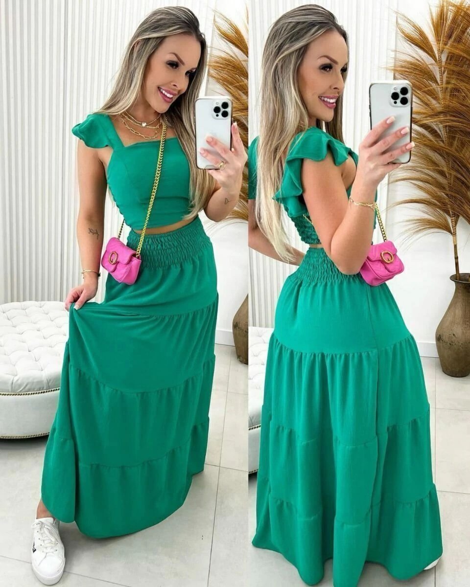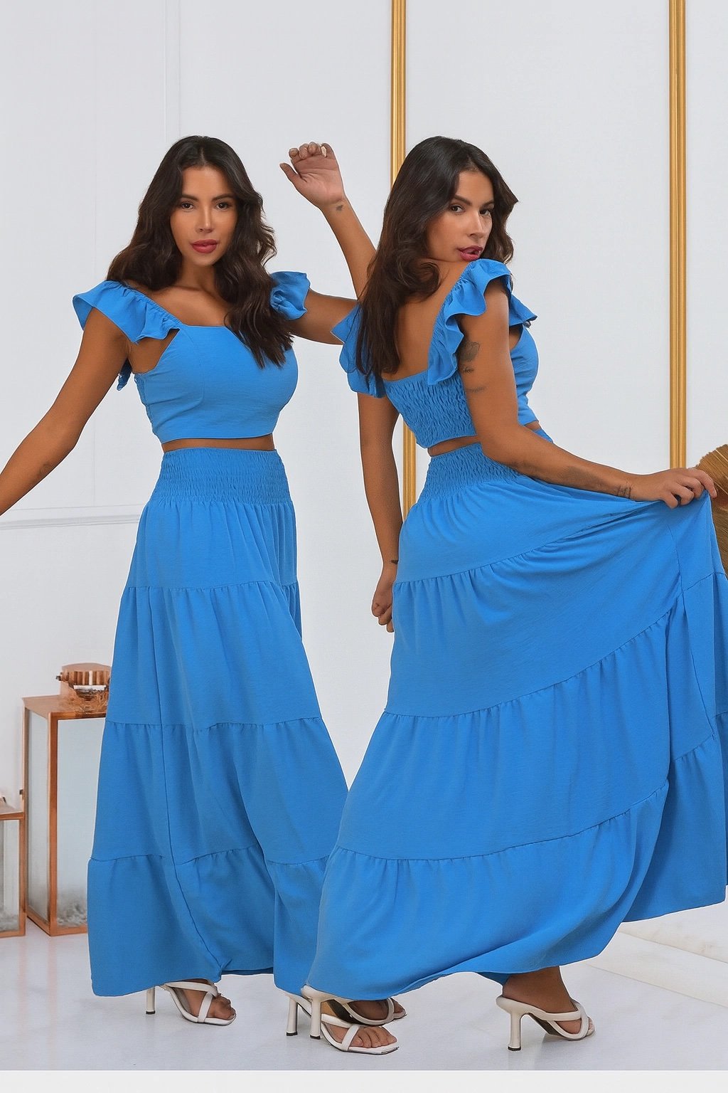 2728 Conjunto Angel max camisa bolso e saia com shorts alfaiataria