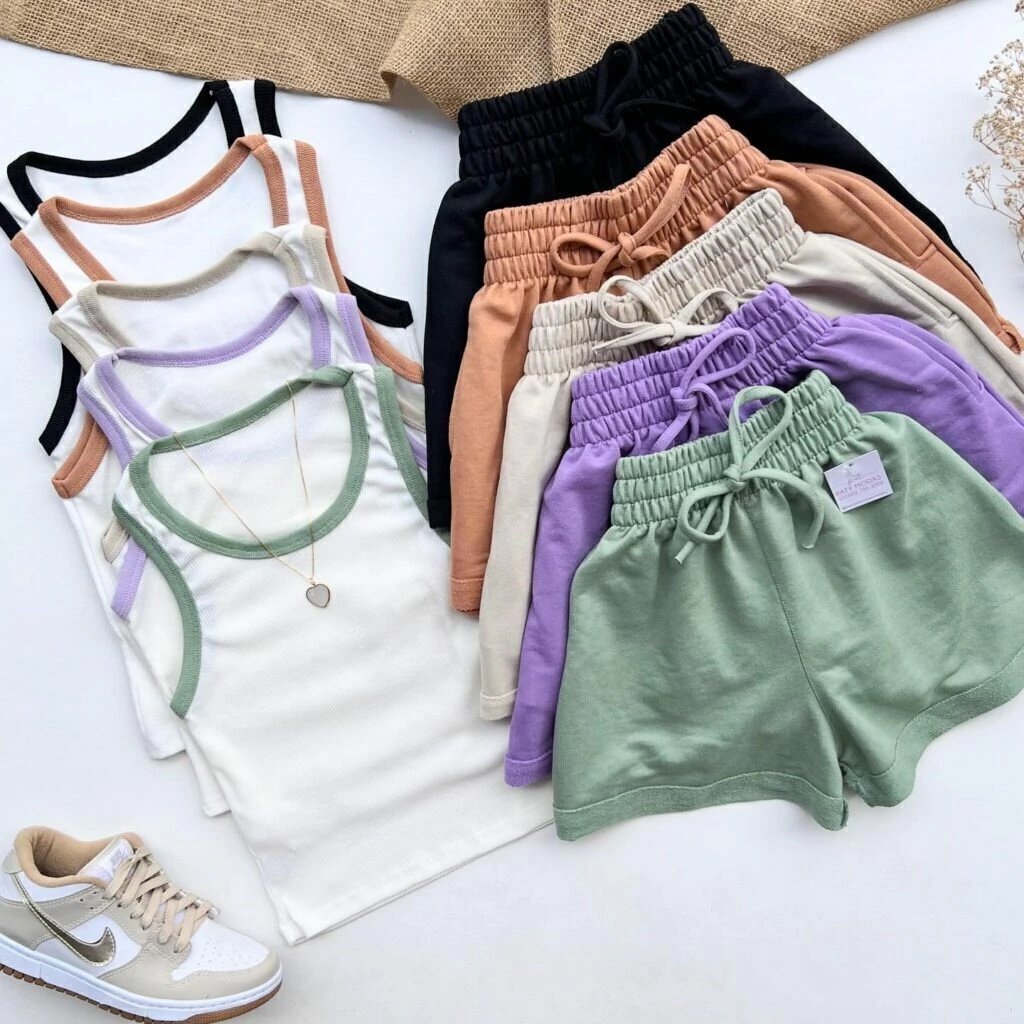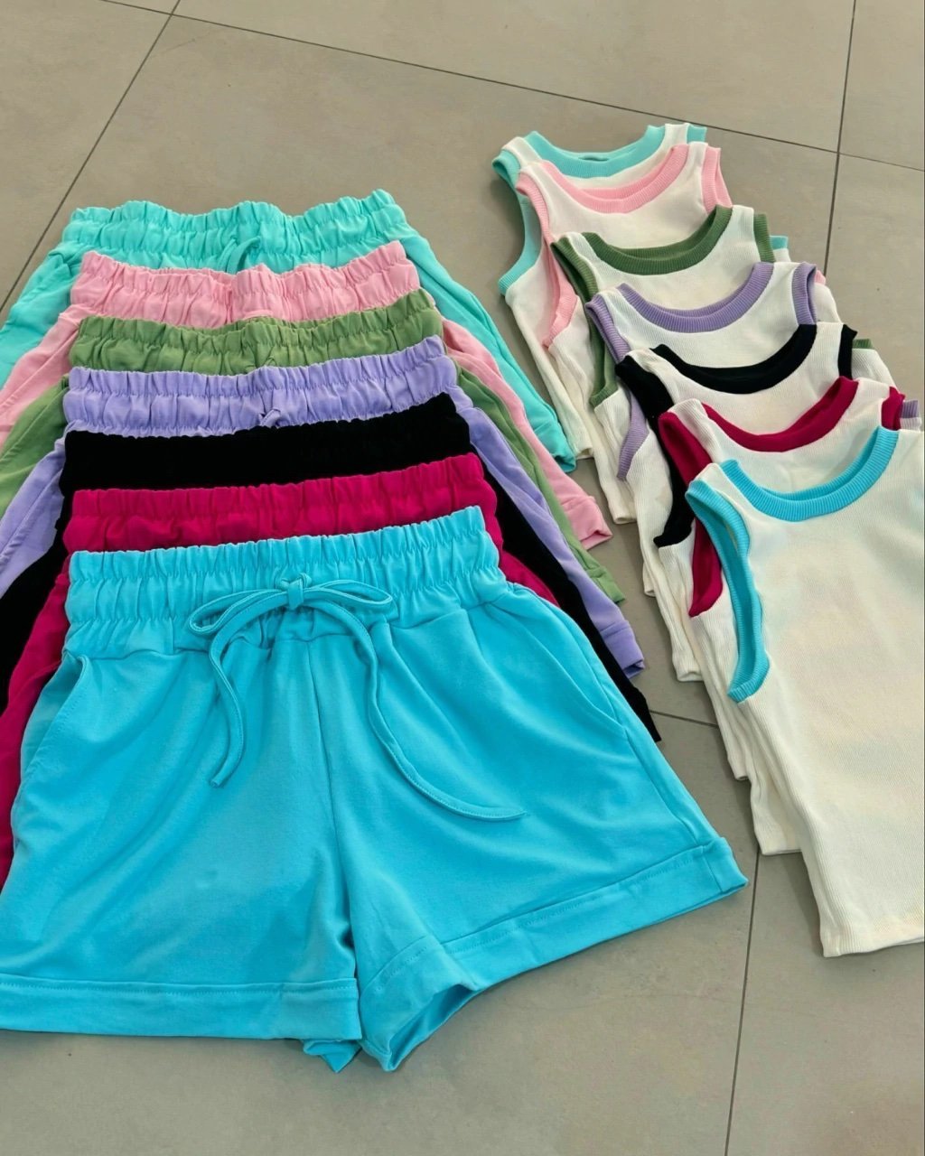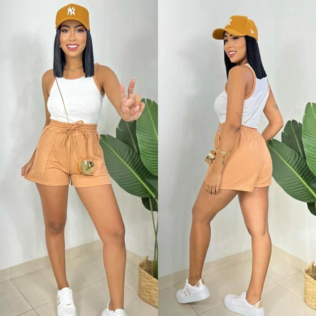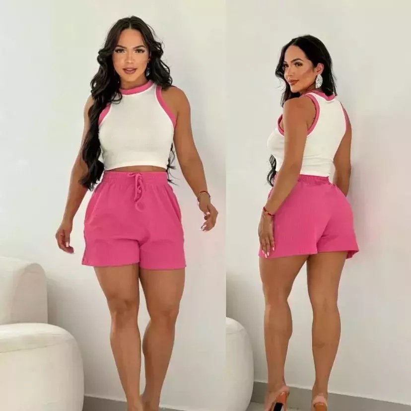 2604 Conjunto Ali 3 peças max camisa cropped e shorts linhão