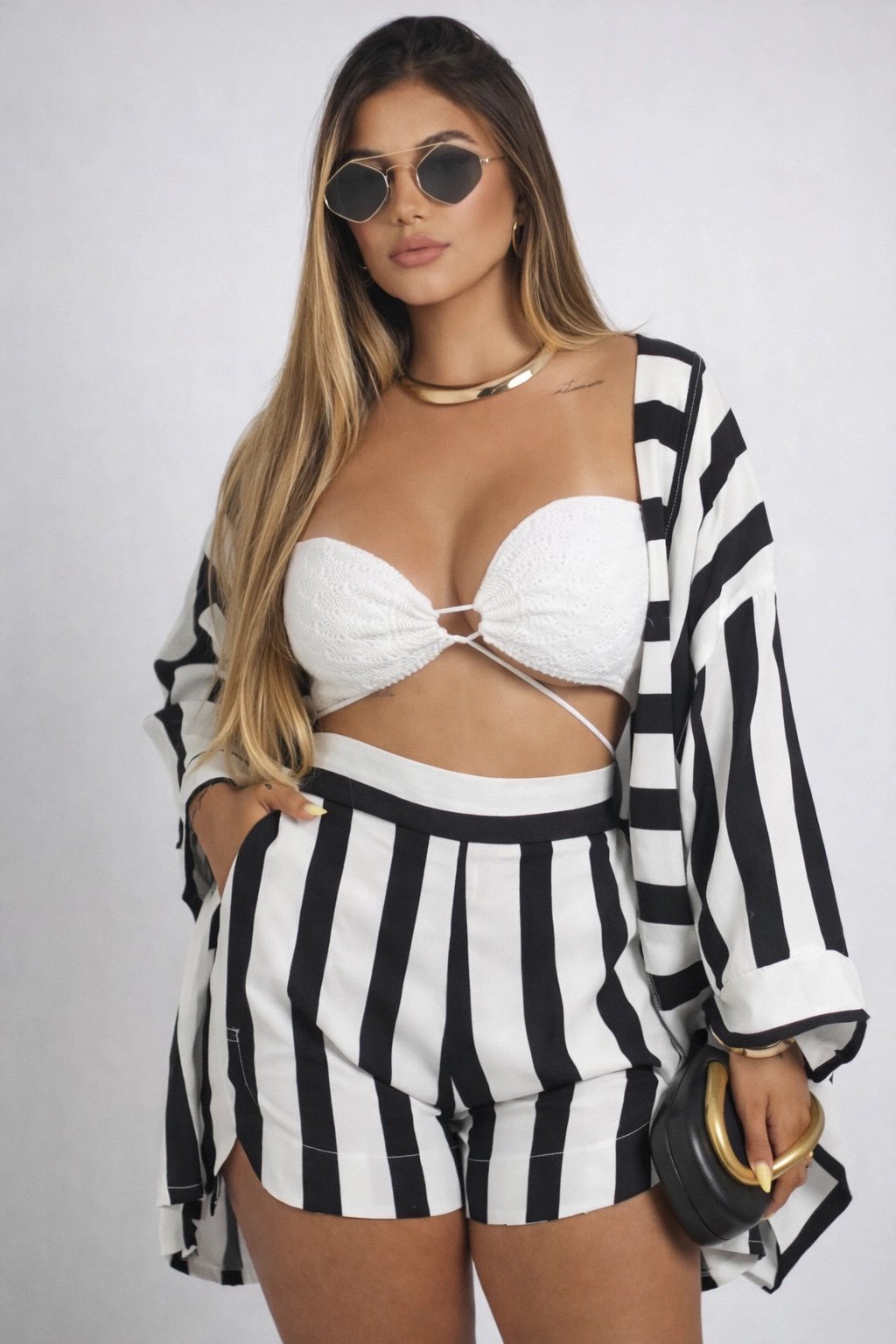 2792 Conjunto Ateliê camisa regata botão e shorts listrada