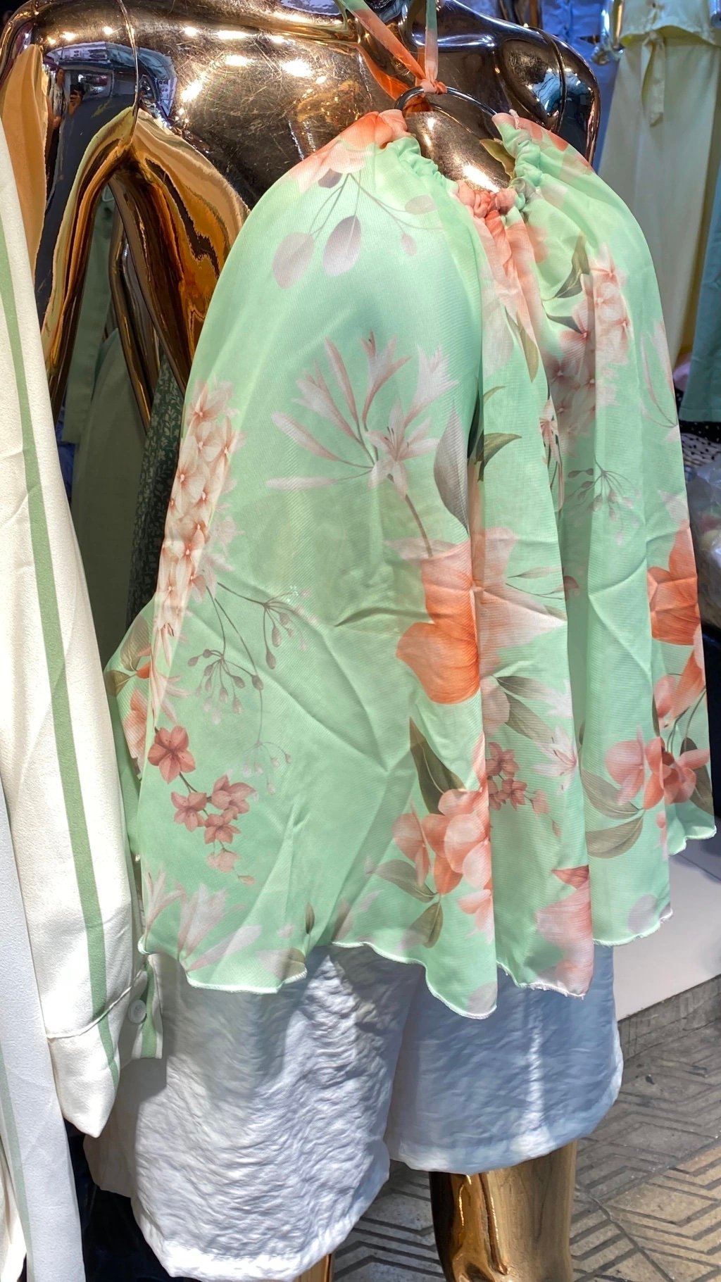 2460 Conjunto 3 peças kimono cropped e shorts saia