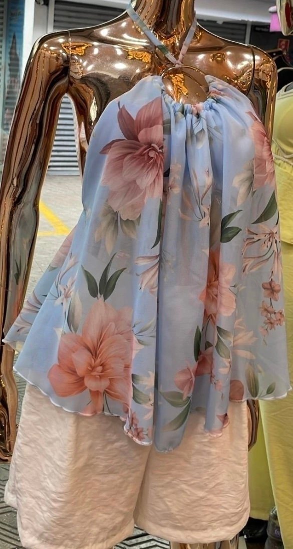 2728 Conjunto Angel max camisa bolso e saia com shorts alfaiataria