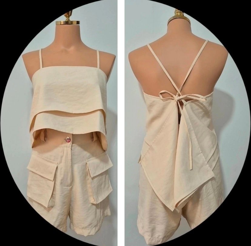 2205 Conjunto Jak blusa regata botão e shorts bolso moletom