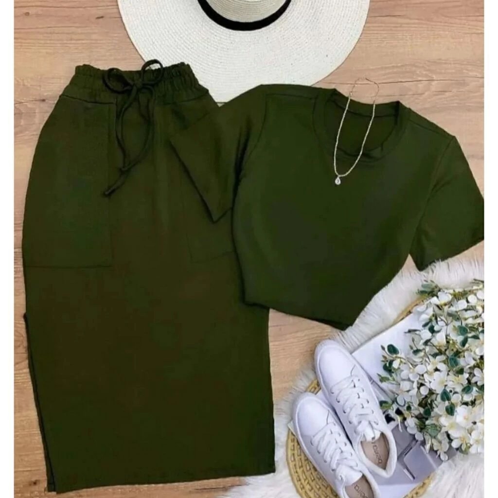 2896 Conjunto Anthony blusa regata frente única decote boba e shorts saia