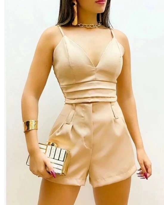 2893 Conjunto blusa manga curta estilo parka zíper calça pantalona alfaiataria