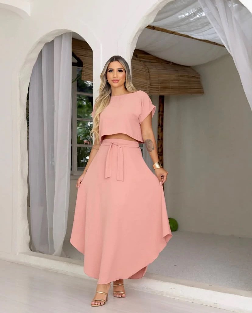 1850 Conjunto Beli blazer básico e saia curta bolso
