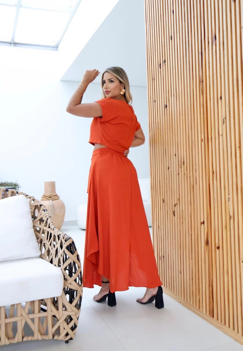 2778 Conjunto Jey cropped alça fina e calça pantalona listrado