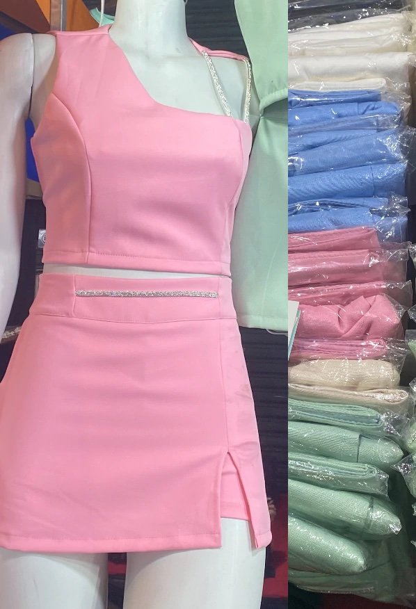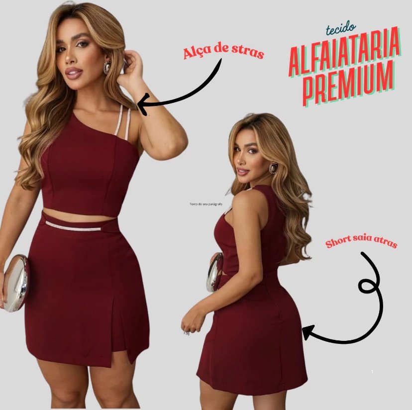 2728 Conjunto Angel max camisa bolso e saia com shorts alfaiataria