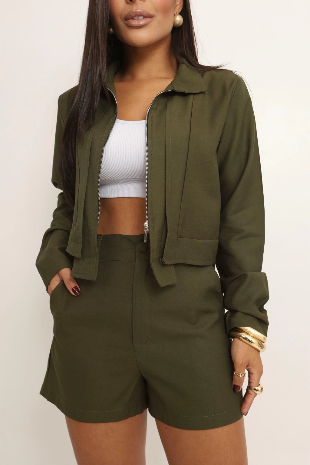 2604 Conjunto Ali 3 peças max camisa cropped e shorts linhão