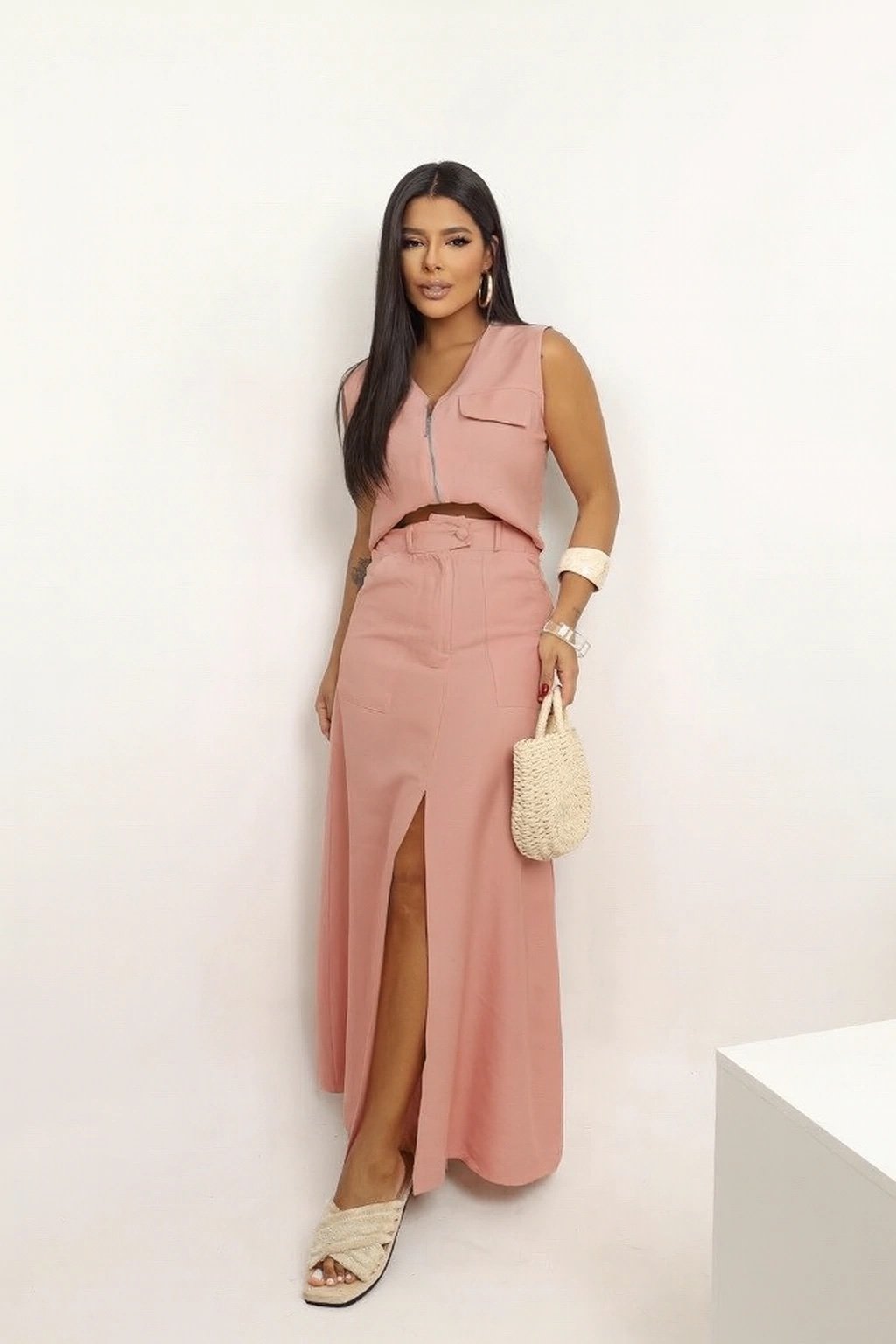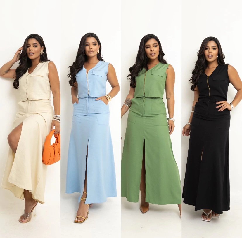 2728 Conjunto Angel max camisa bolso e saia com shorts alfaiataria