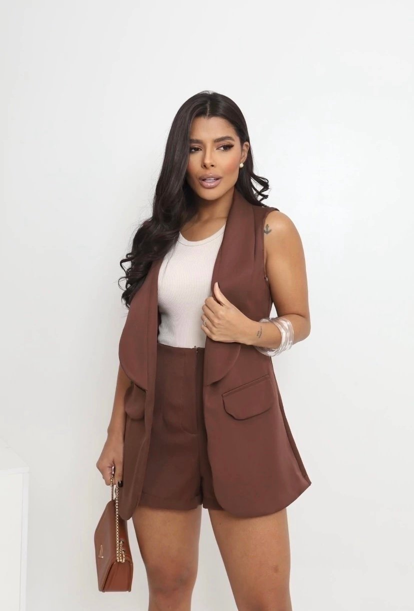 2723 Conjunto Anthony 3 peças blusa capa multi formas, cropped faixa e shorts saia