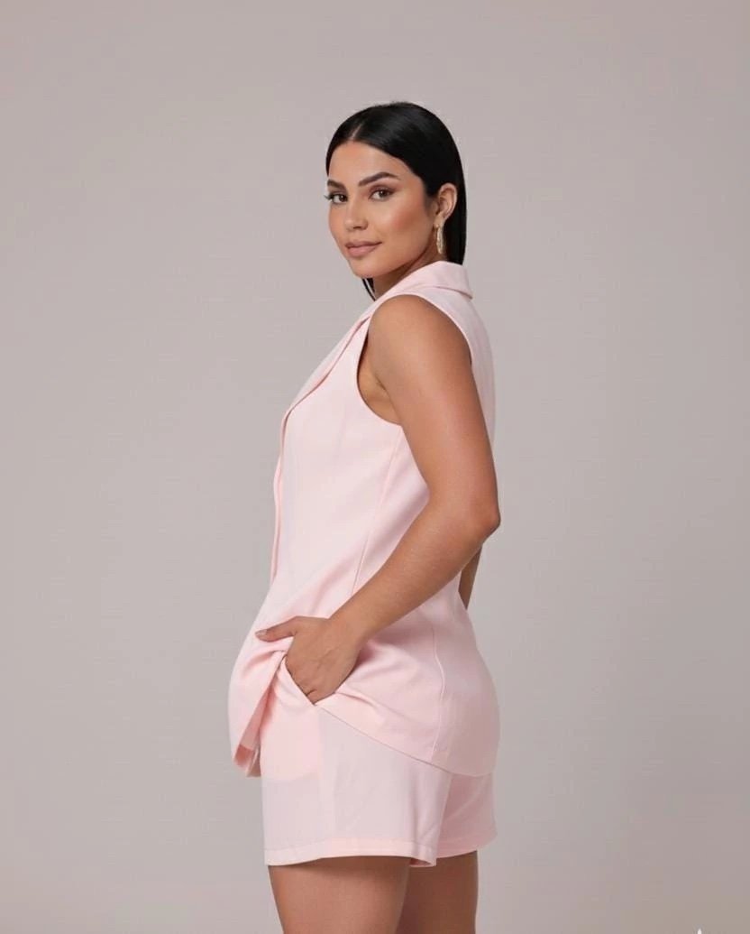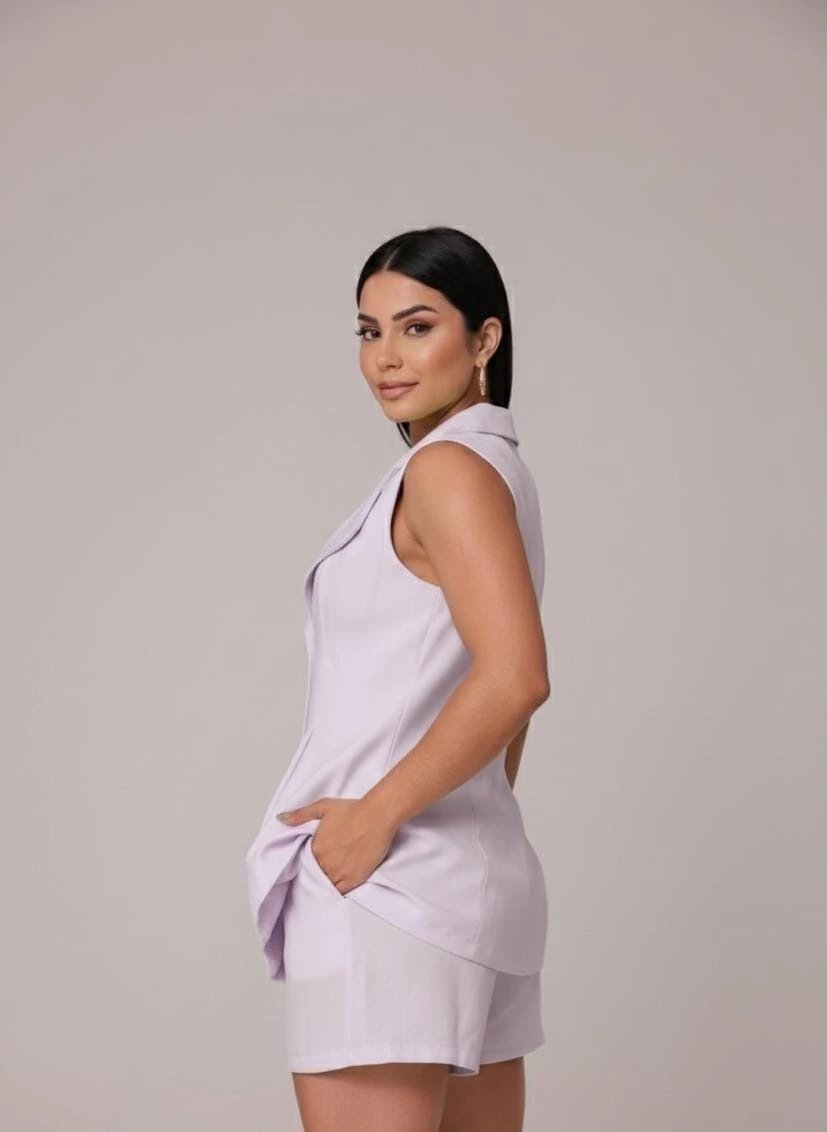 2604 Conjunto Ali 3 peças max camisa cropped e shorts linhão