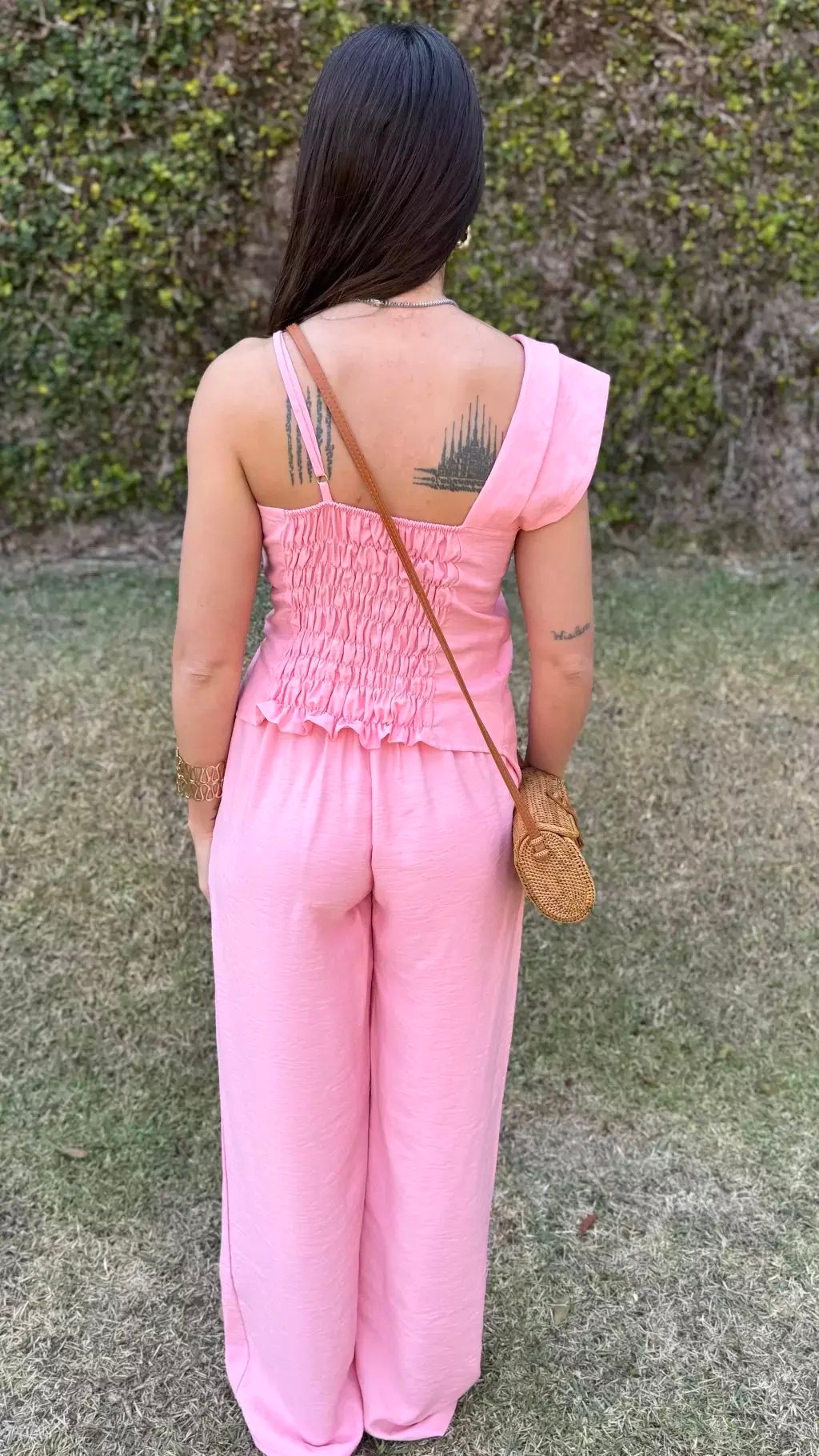 Conjunto Sisa blusa regata assimétrica e calça pantalona alfaiataria