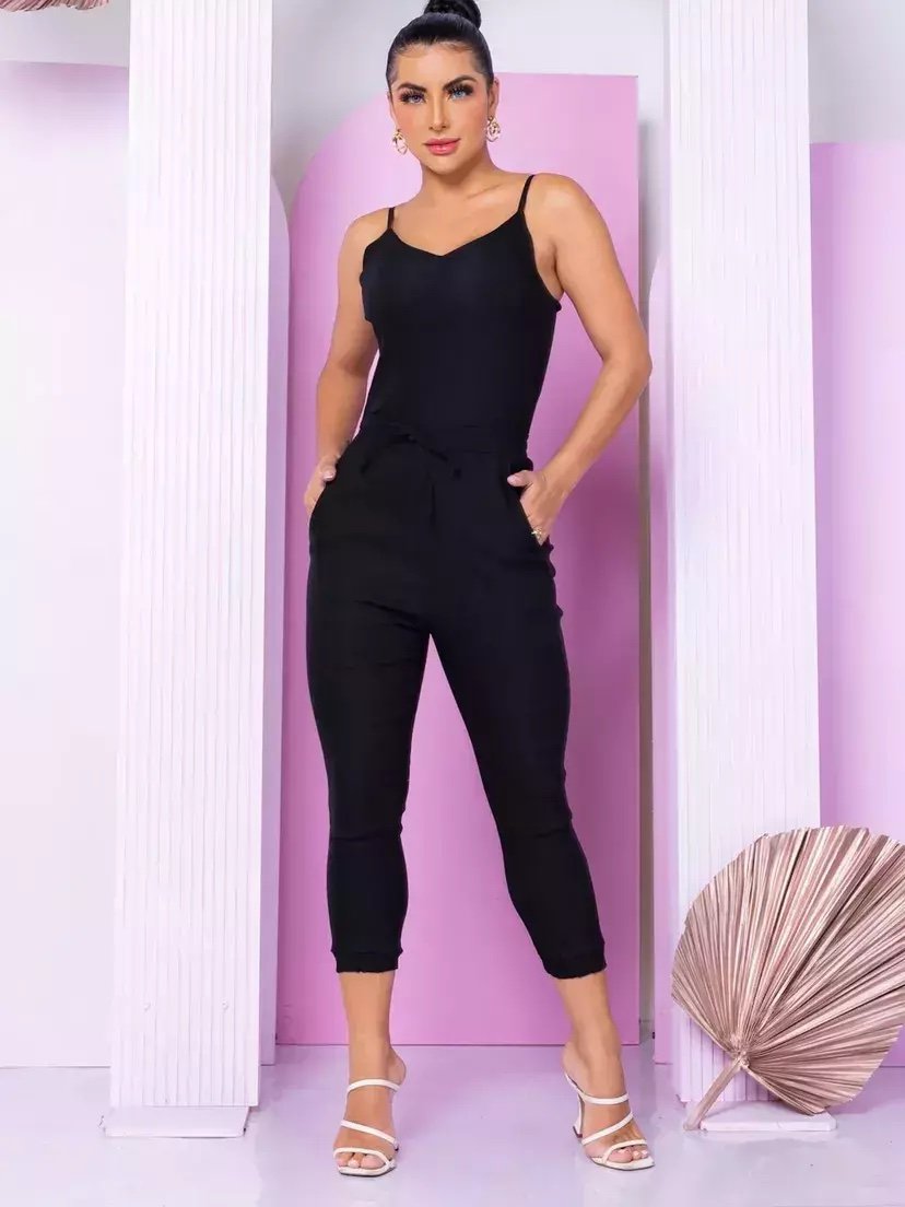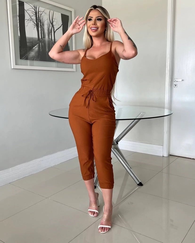 2010 Macacão e macaquinho gata alça fina pantalona jeans