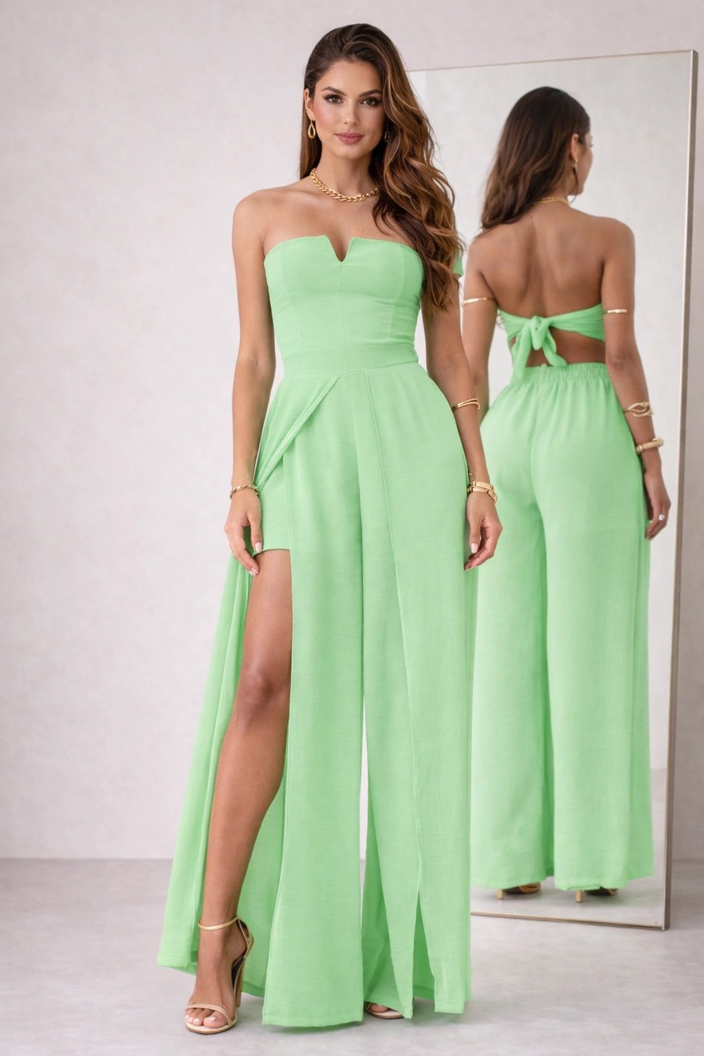 2950 Macacão Emily babado frente única com cinto encapado