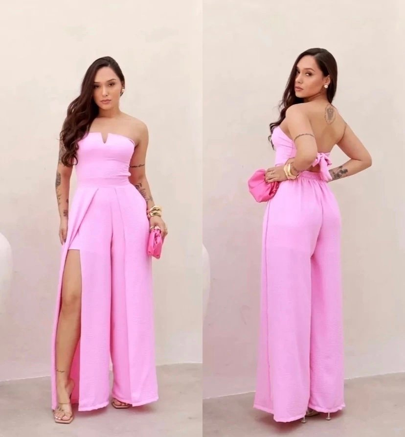 Esgotado2736 Macacão Dilan regata alça fina com faixa na lateral estilo Adidas alfaiataria