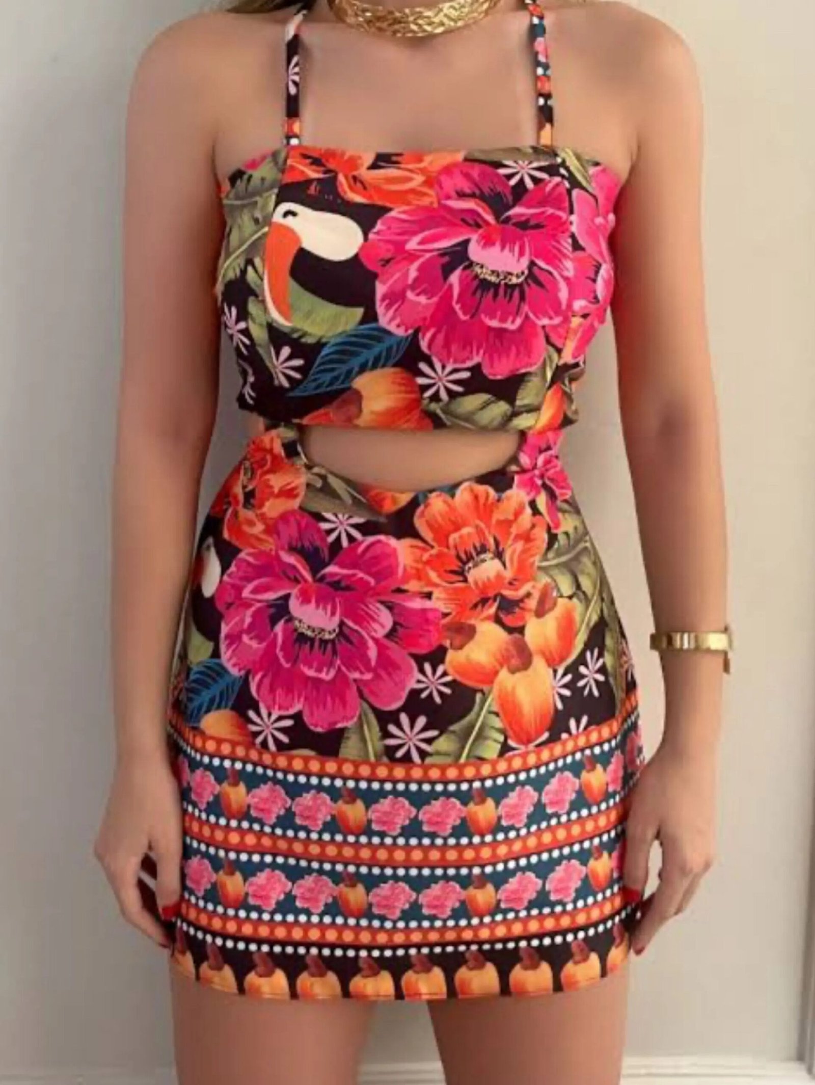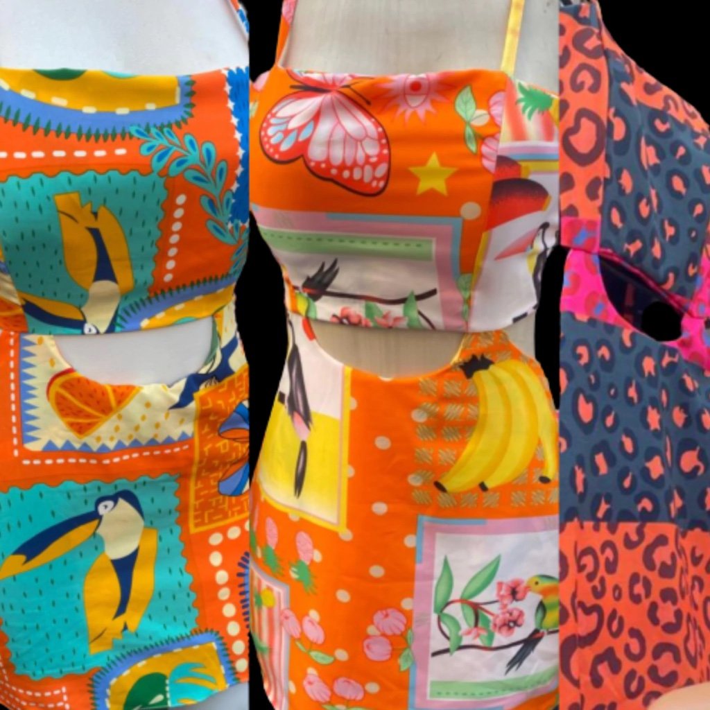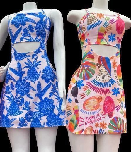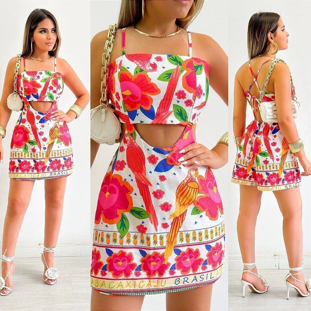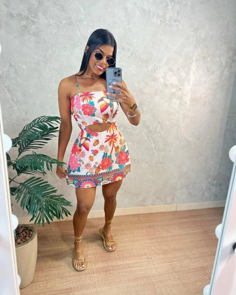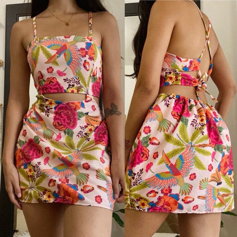 1748 Macaquinho vestido inspiração Farm amarração nas costas