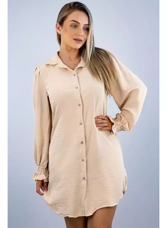 Em tecido crepe de duna.