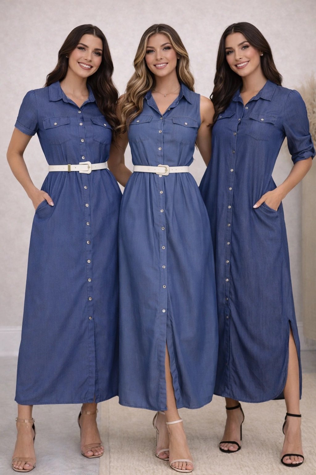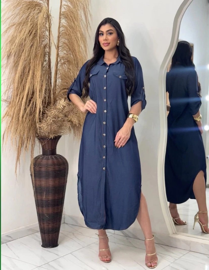 Em tecido jeans chambray com elastano.