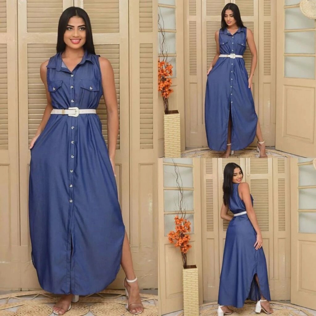2362 Vestido Adriana longo alça fina decote argola