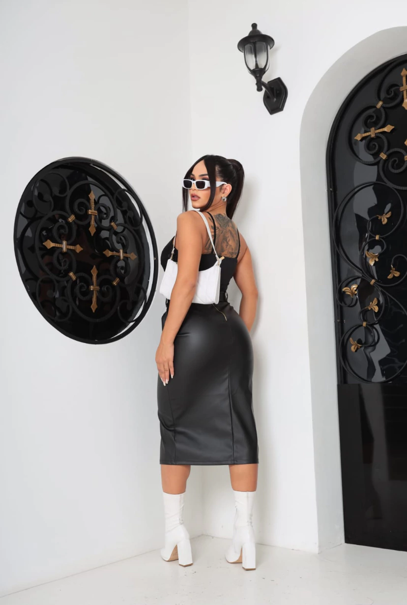Em tecido couro fake.