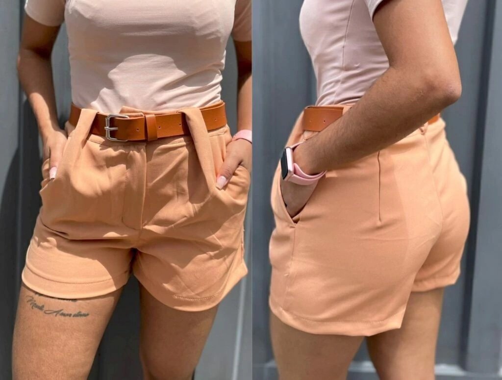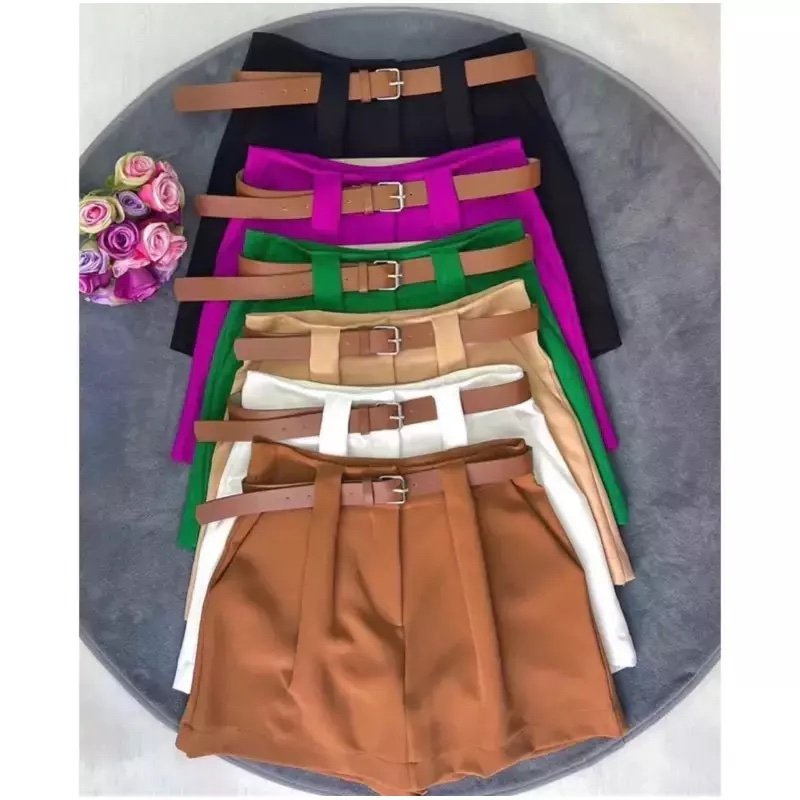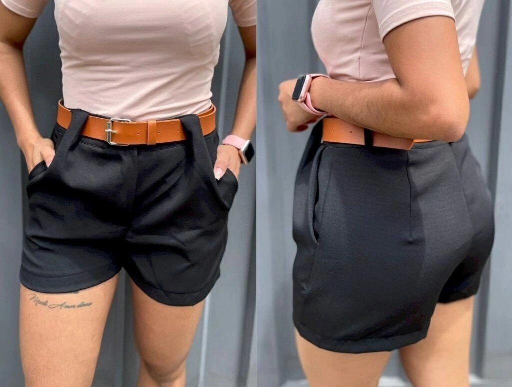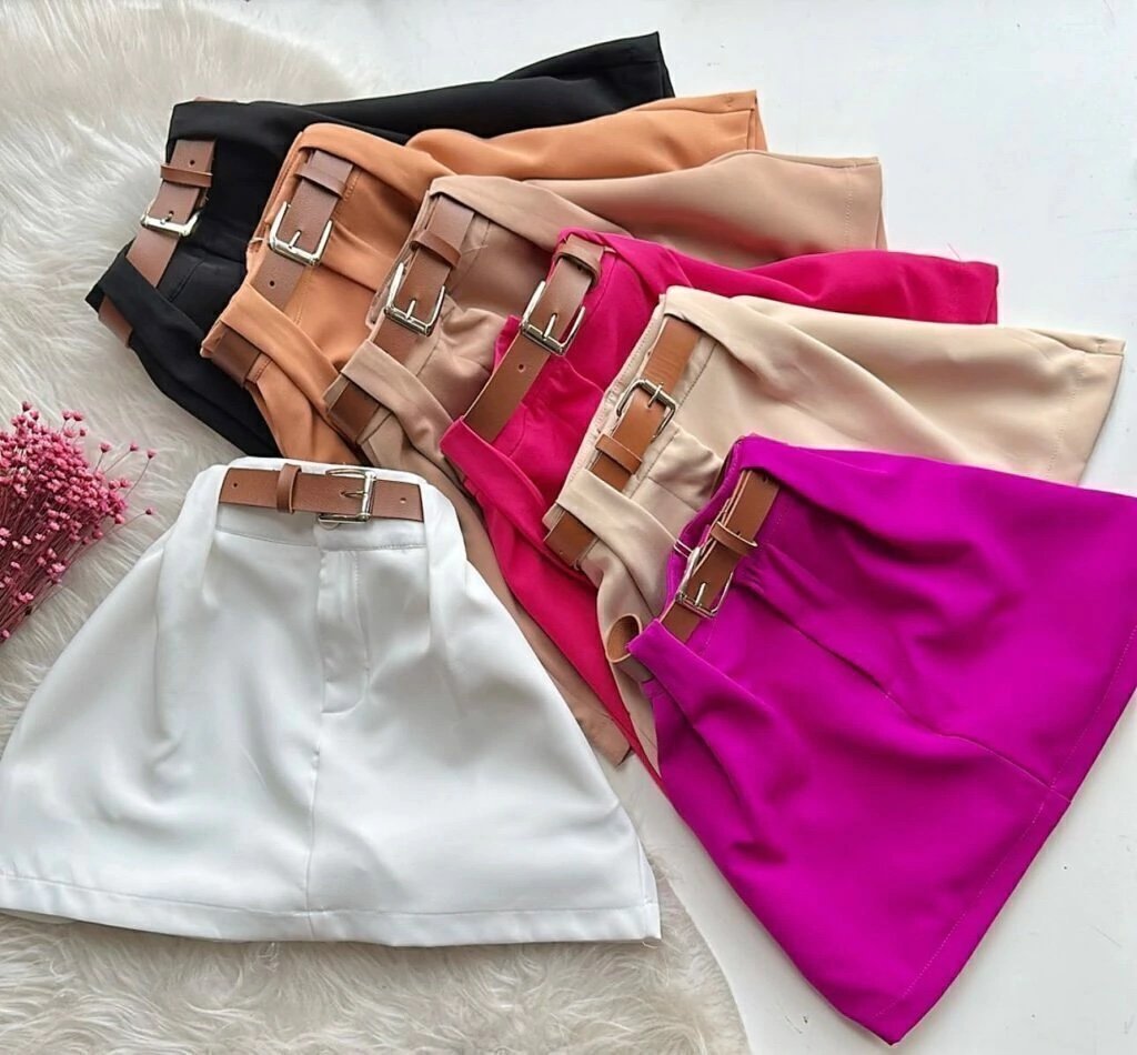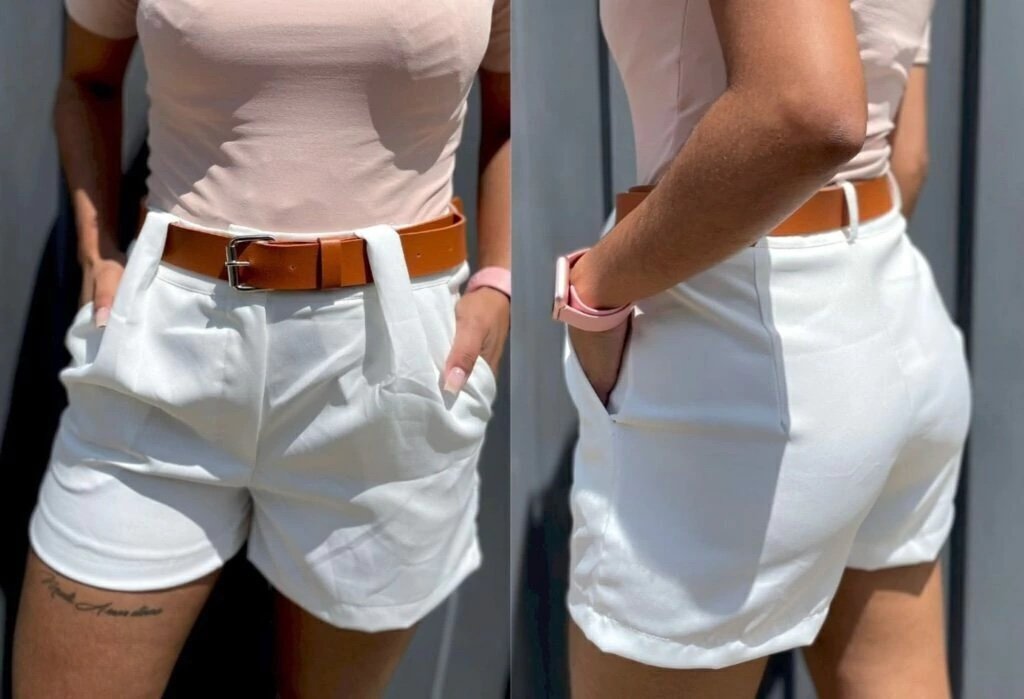 1808 Shorts e Shorts saia estilo Zara alfaiataria com cinto courino