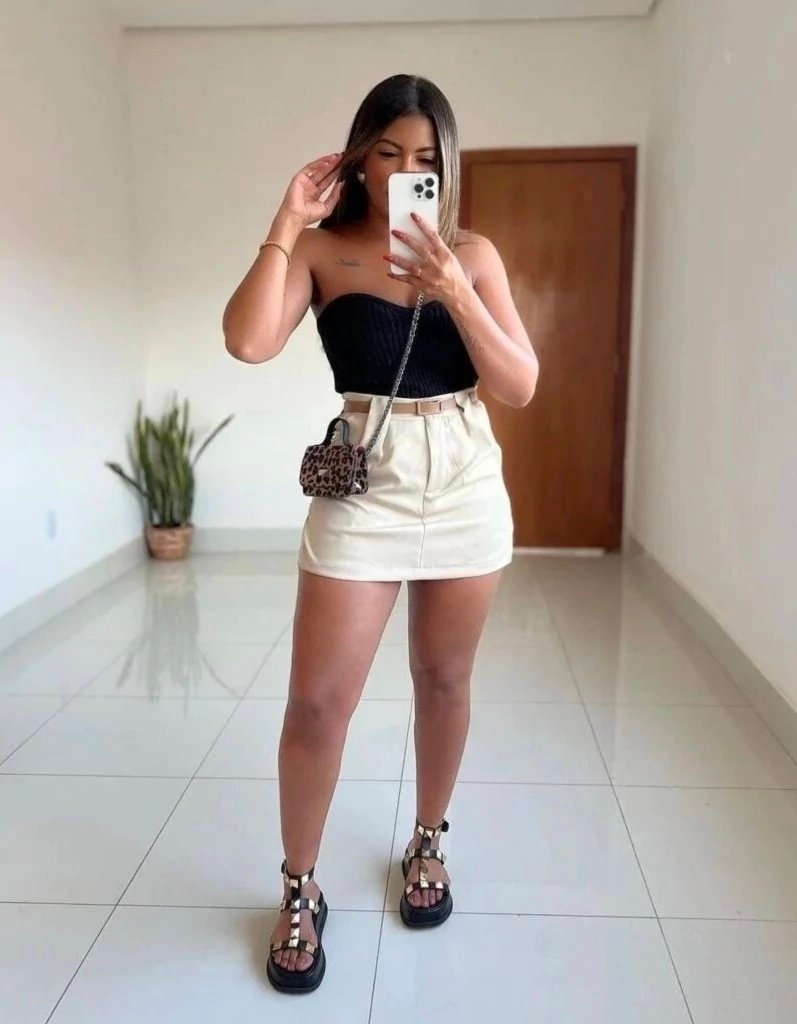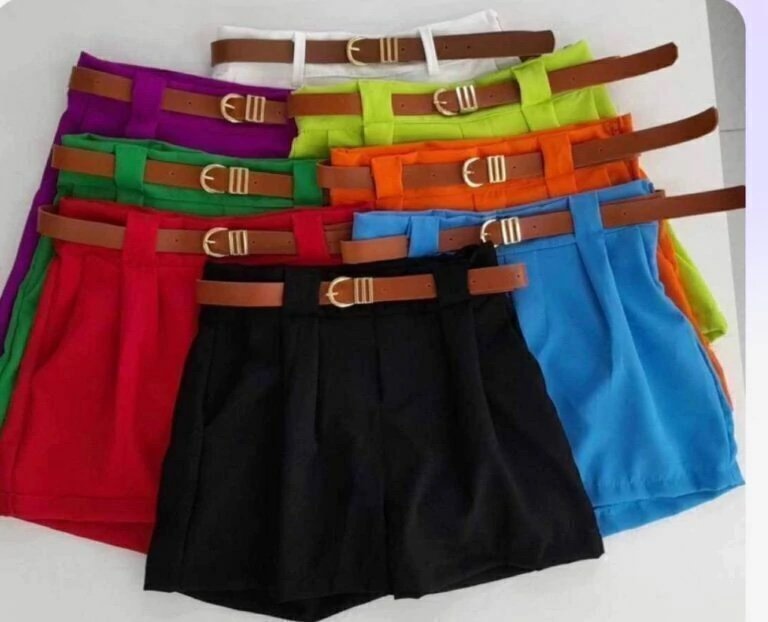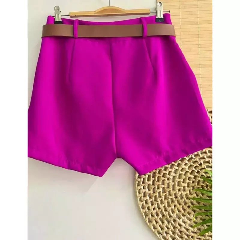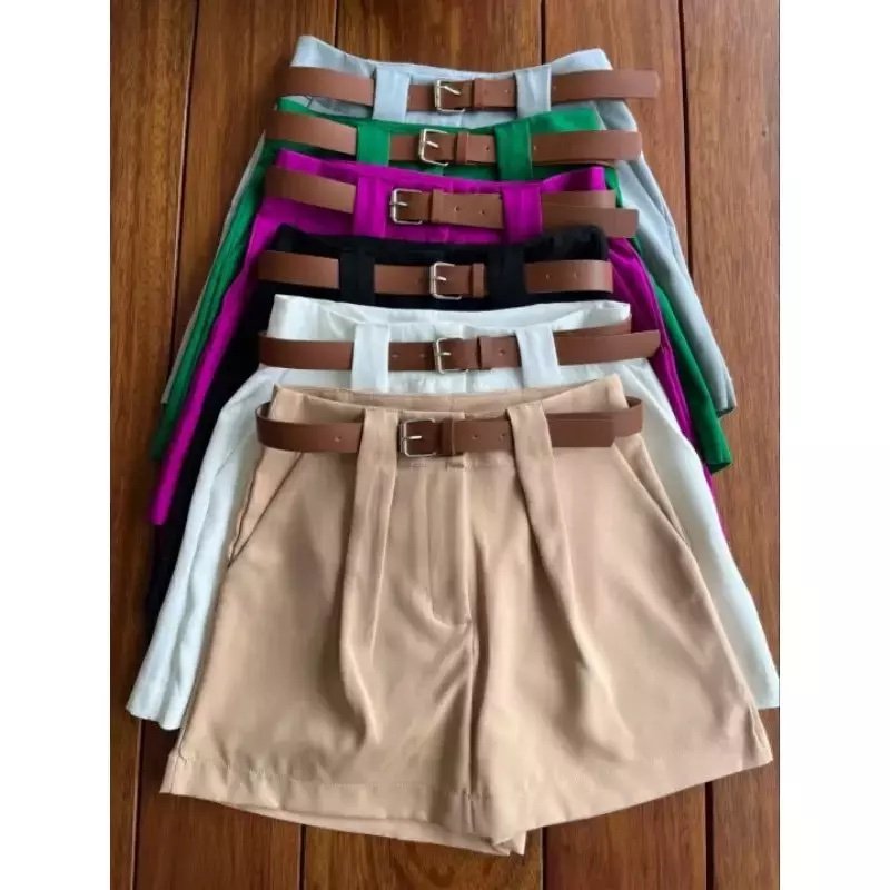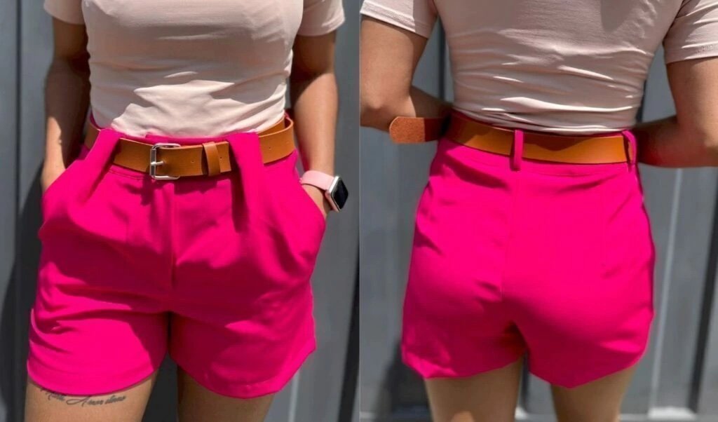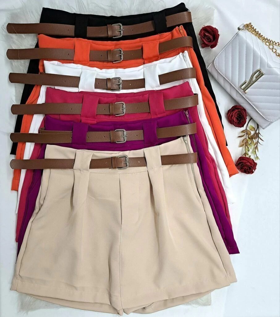 1808 Shorts e Shorts saia estilo Zara alfaiataria com cinto courino