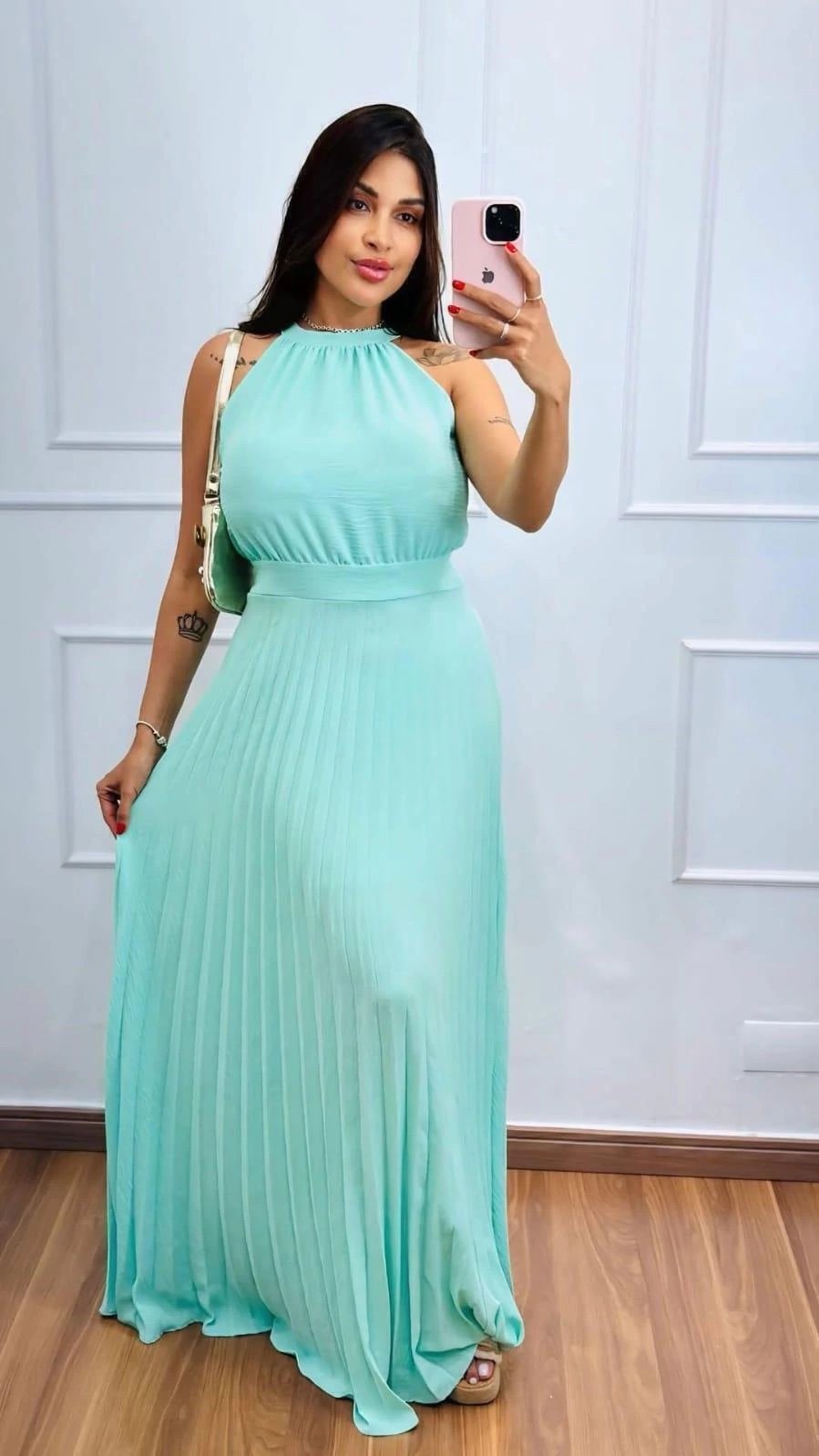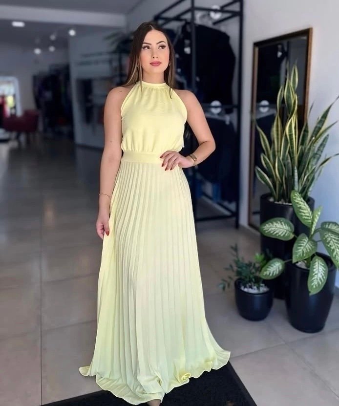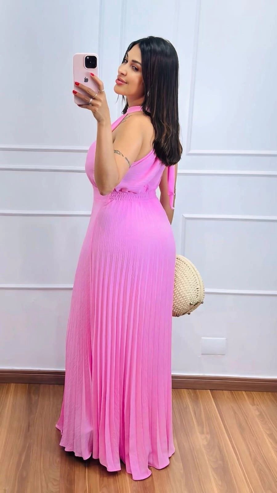 2932 Vestido Adriana longo regata alça fina decote fivela tulipa floral
