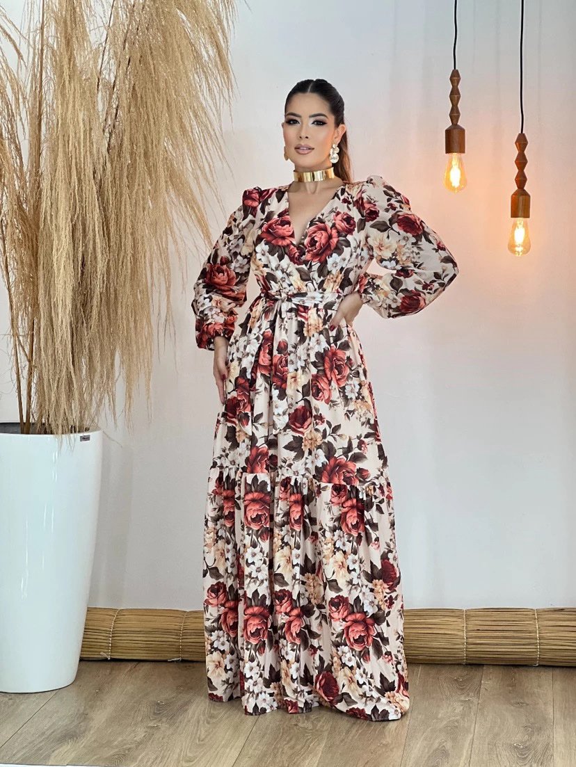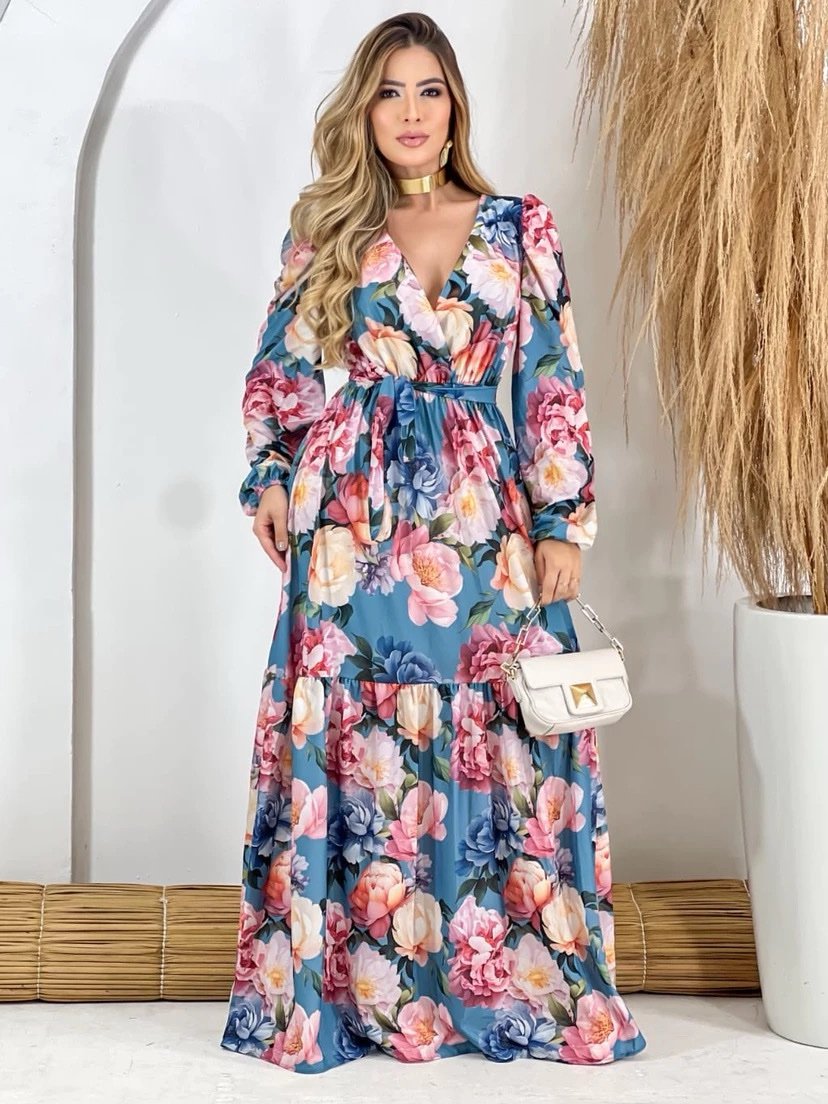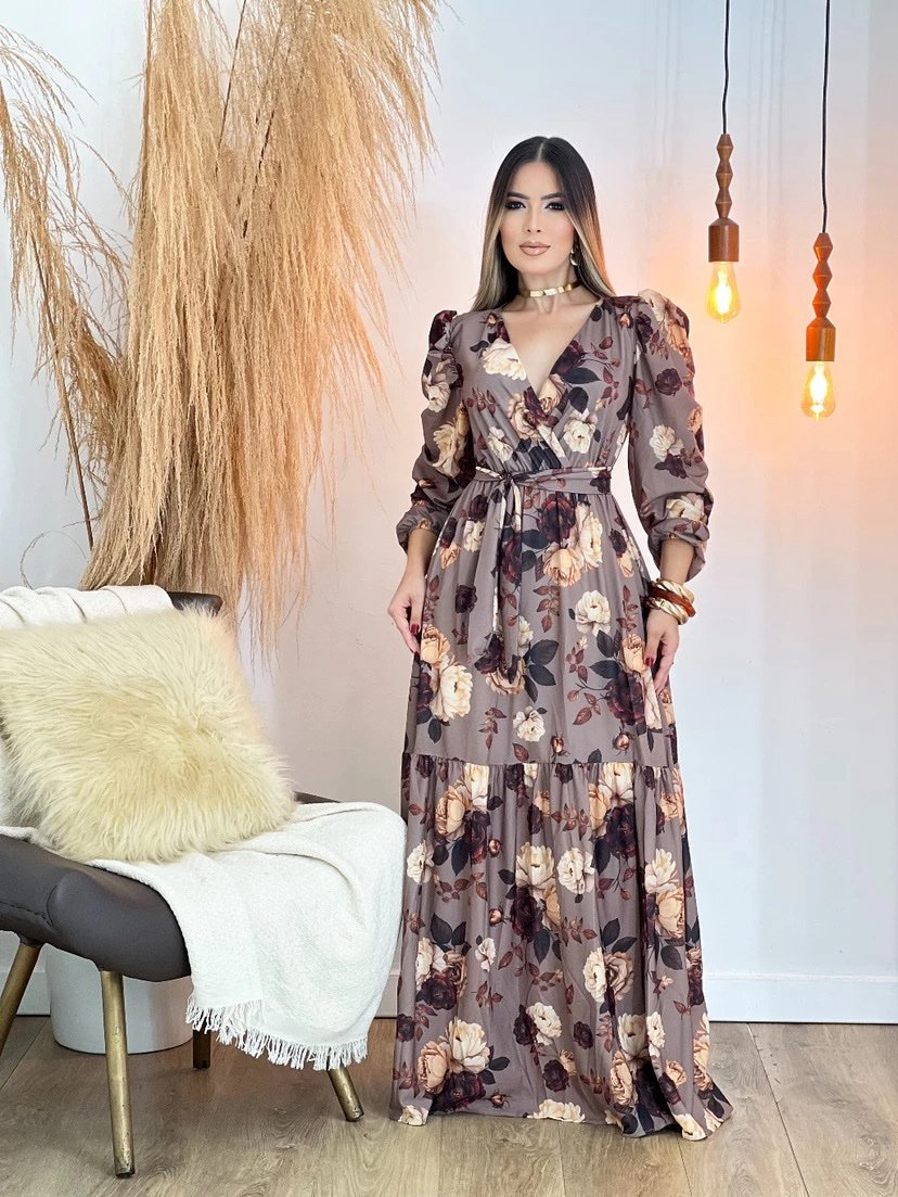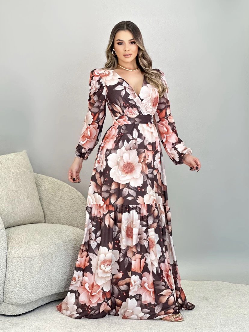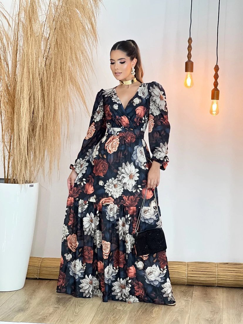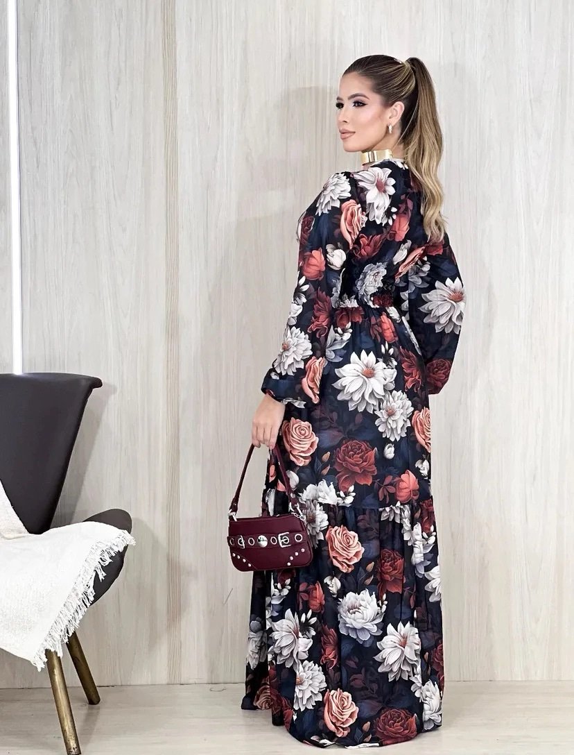 2361 Vestido Adriana longo decote argola alça fina poá