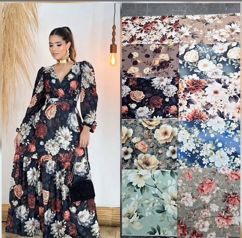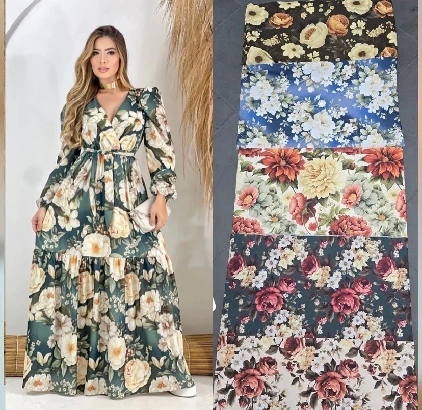Em tecido crepe seda.