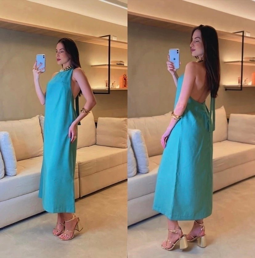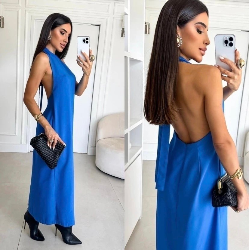 2135 Vestido longo Alge regata costa nua ziper alfaiataria