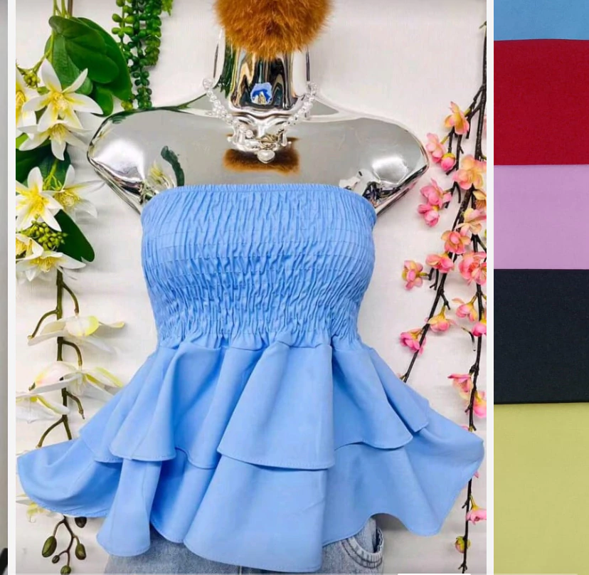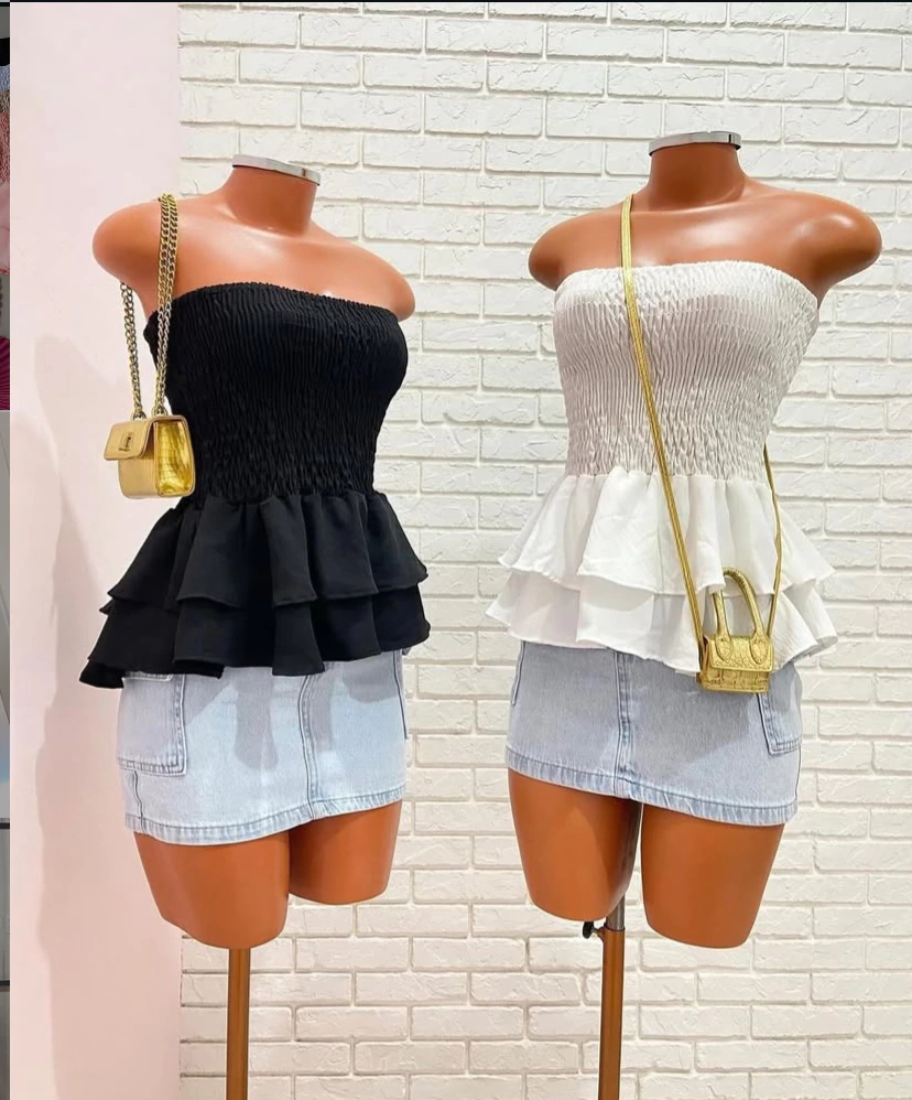 Blusa Eleni bata lastex tomara que caia lisa e poá