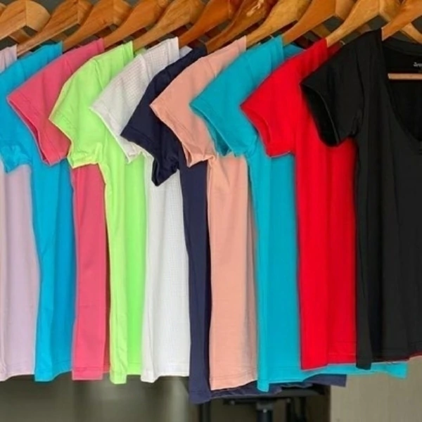 Blusa t-shirts manga curta em tecido malha viscolycra .