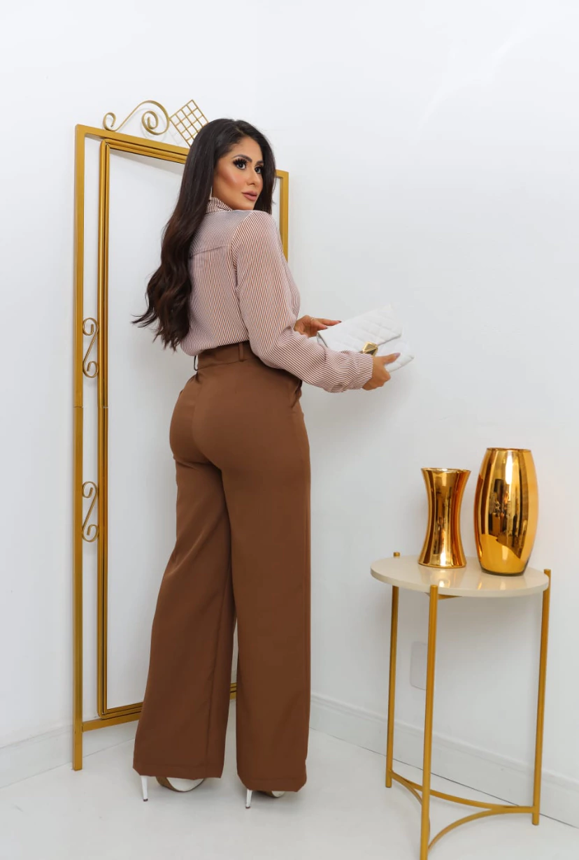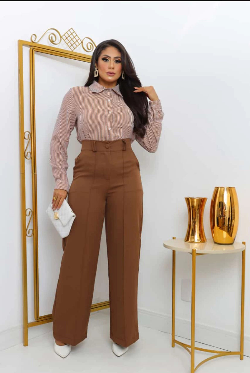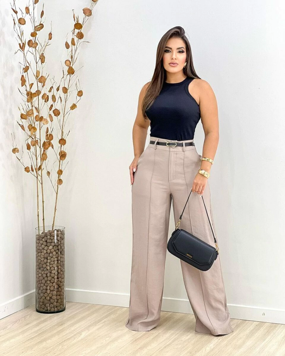 Calça estilo Zara skinny e wide leg pantalona botão