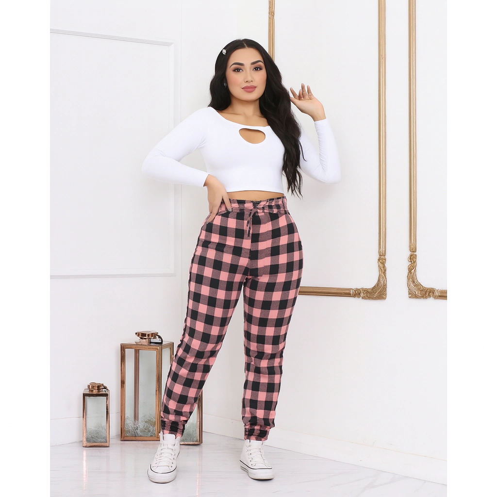 Calça jogger em tecido bengaline com elastano.