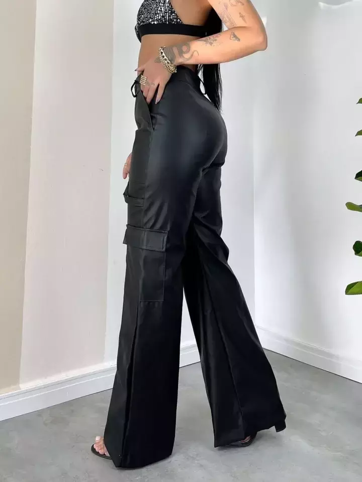 Calça Leia wide leg pantalona lisa cargo