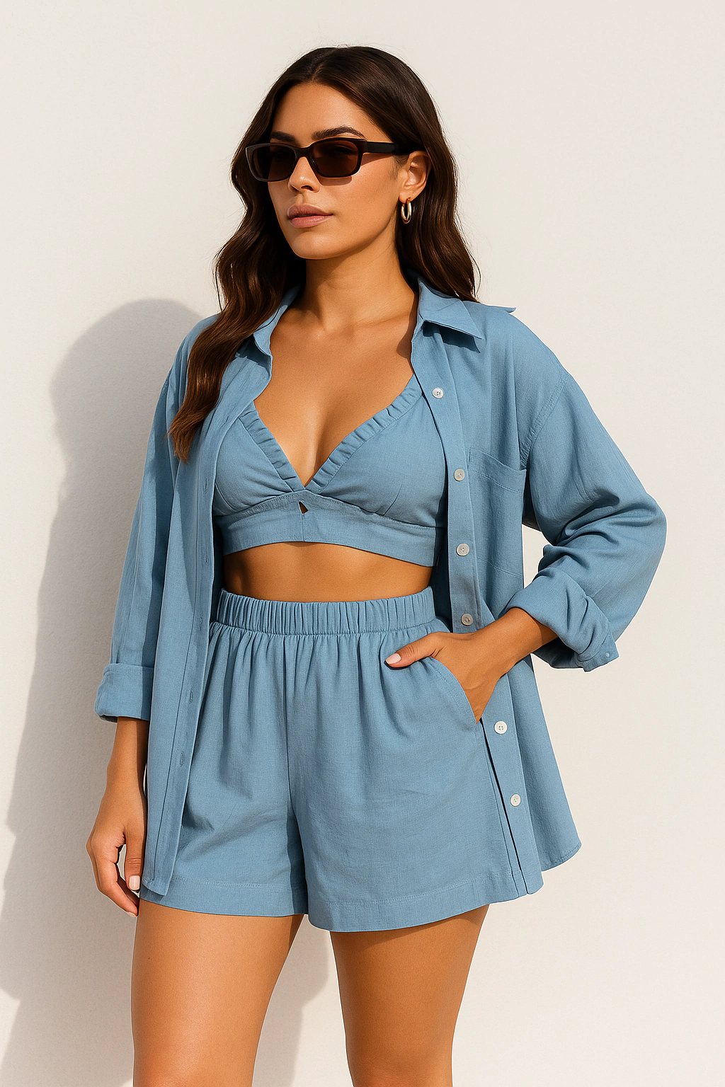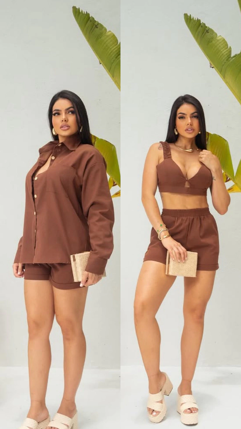 Conjunto Ali 3 peças max camisa cropped e shorts linhão