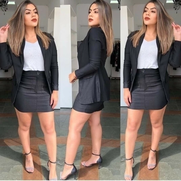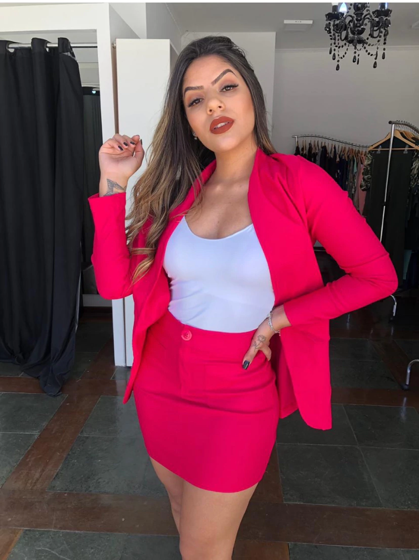 Conjunto Beli blazer básico e saia curta bolso