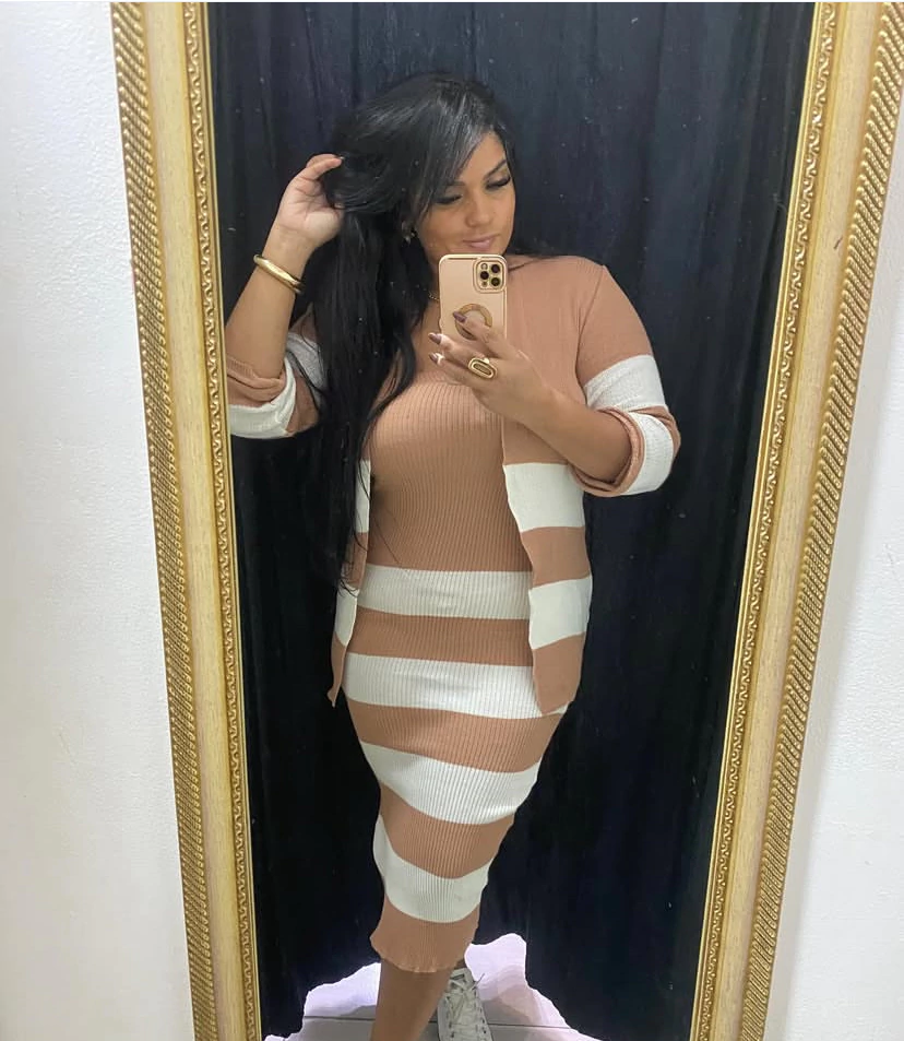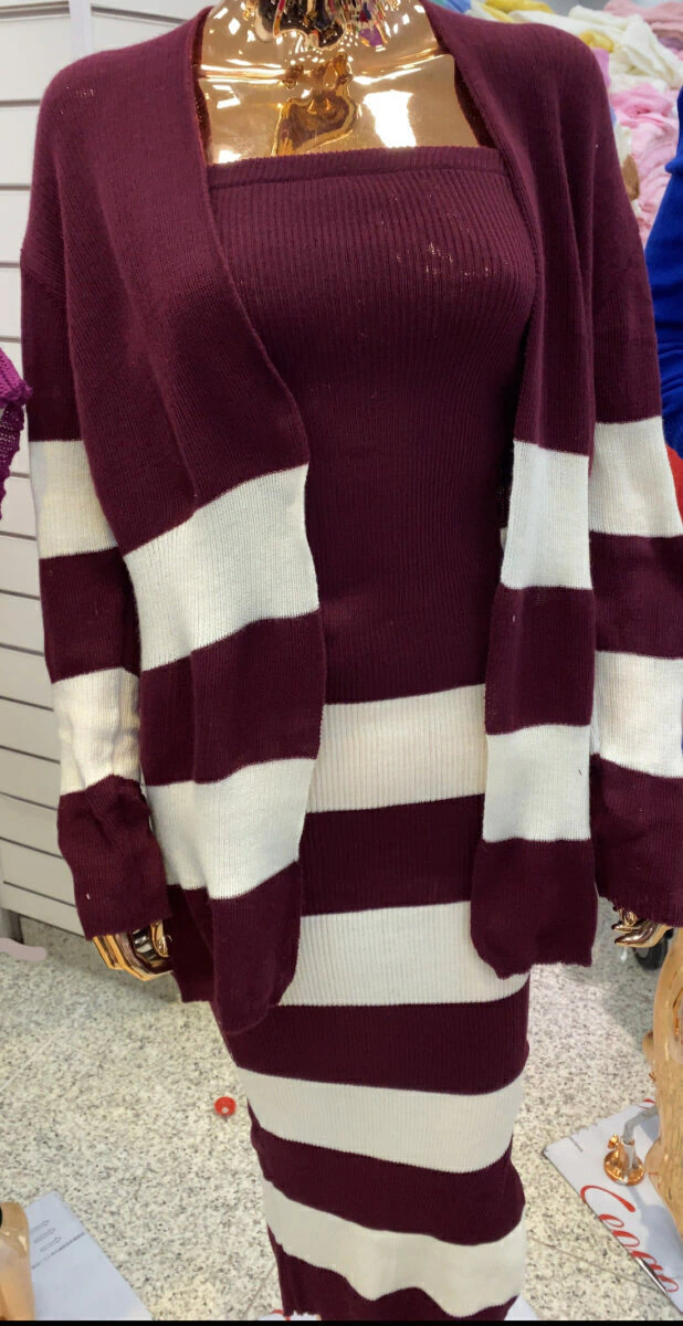 Conjunto Paula max cardigan e vestido tomara que caia midi