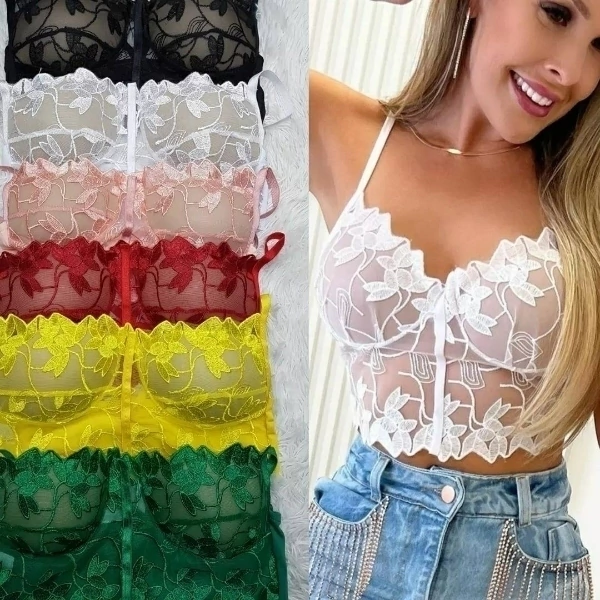 Cropped alça fina renda gripir
